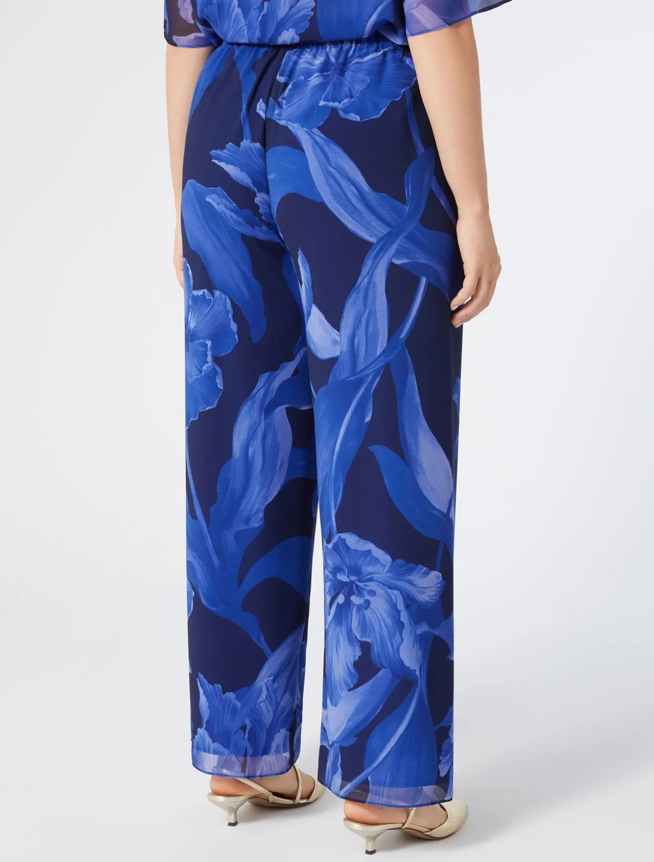 Stampa esclusiva per i pantaloni in georgette, dalla linea dritta. Per dare un twist grafico alle tue mise.