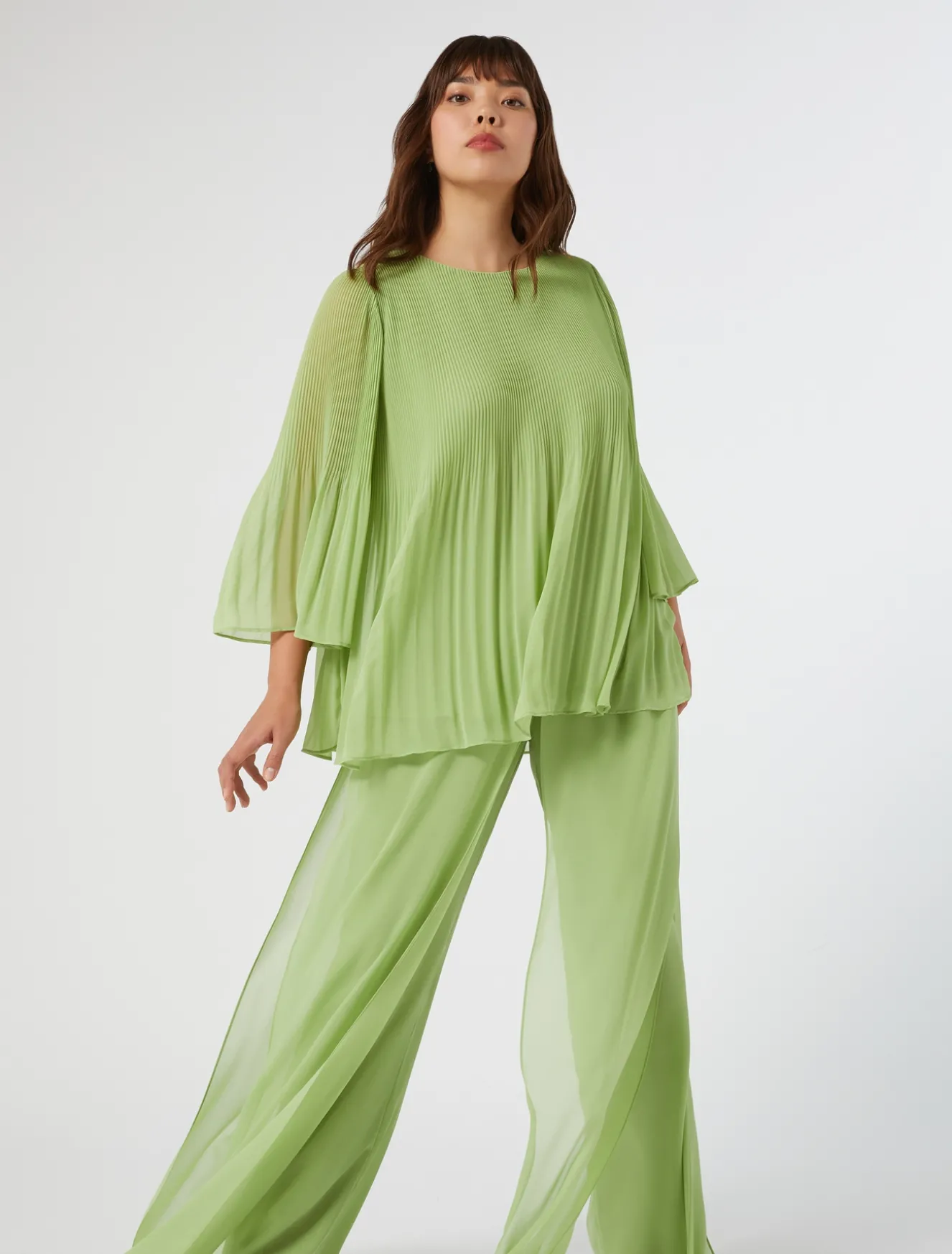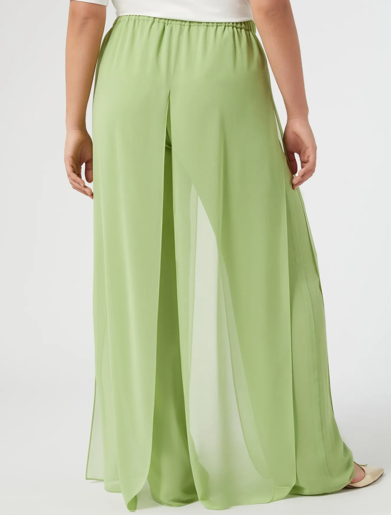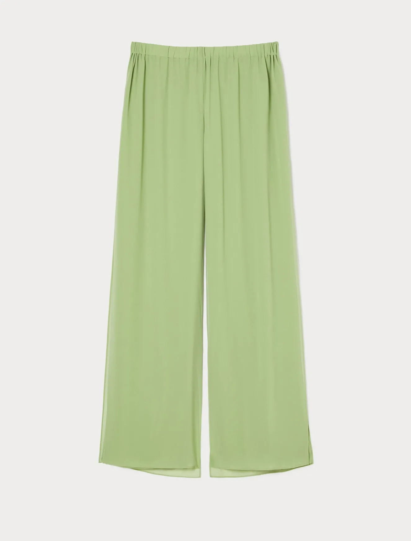 Design ricercato per i pantaloni in georgette dalla linea dritta con spacchi laterali ai fianchi. Base perfetta per una miriade di look.
