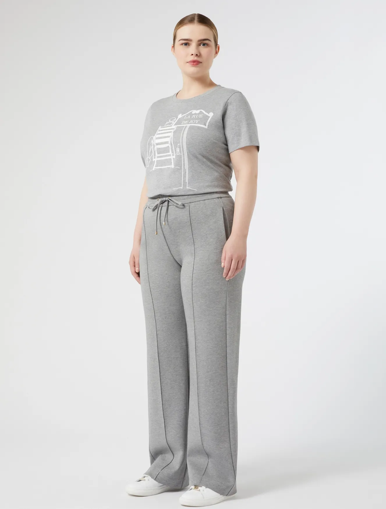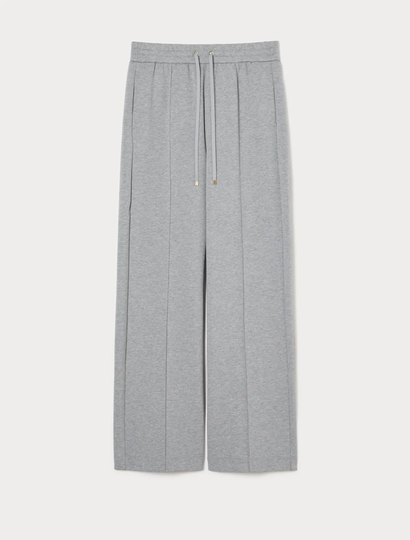 Linea ampia e sporty per i pantaloni in jersey doppio di misto cotone. Easywear dai dettagli sartoriali da abbinare con semplicità, anche in abbinamento alla felpa in coordinato.