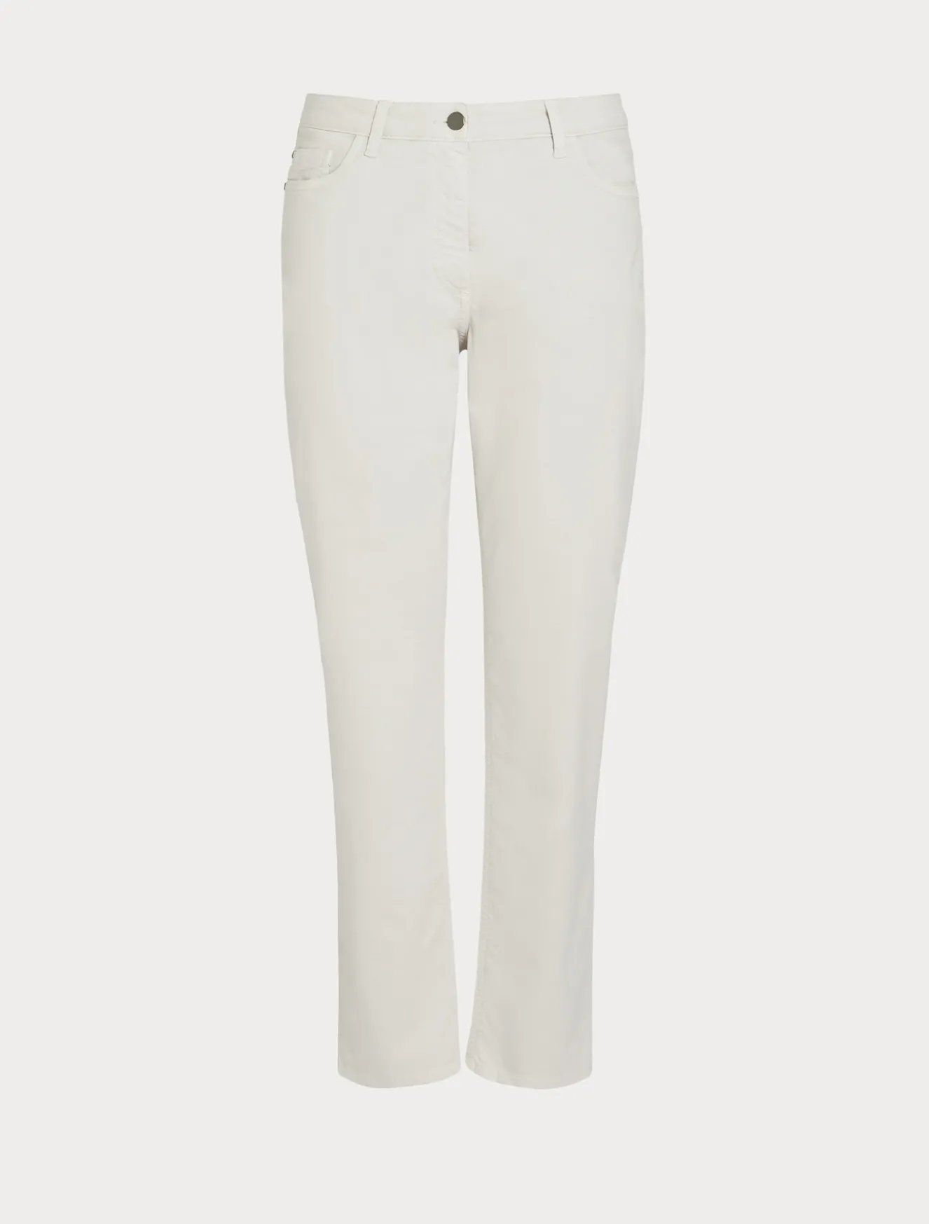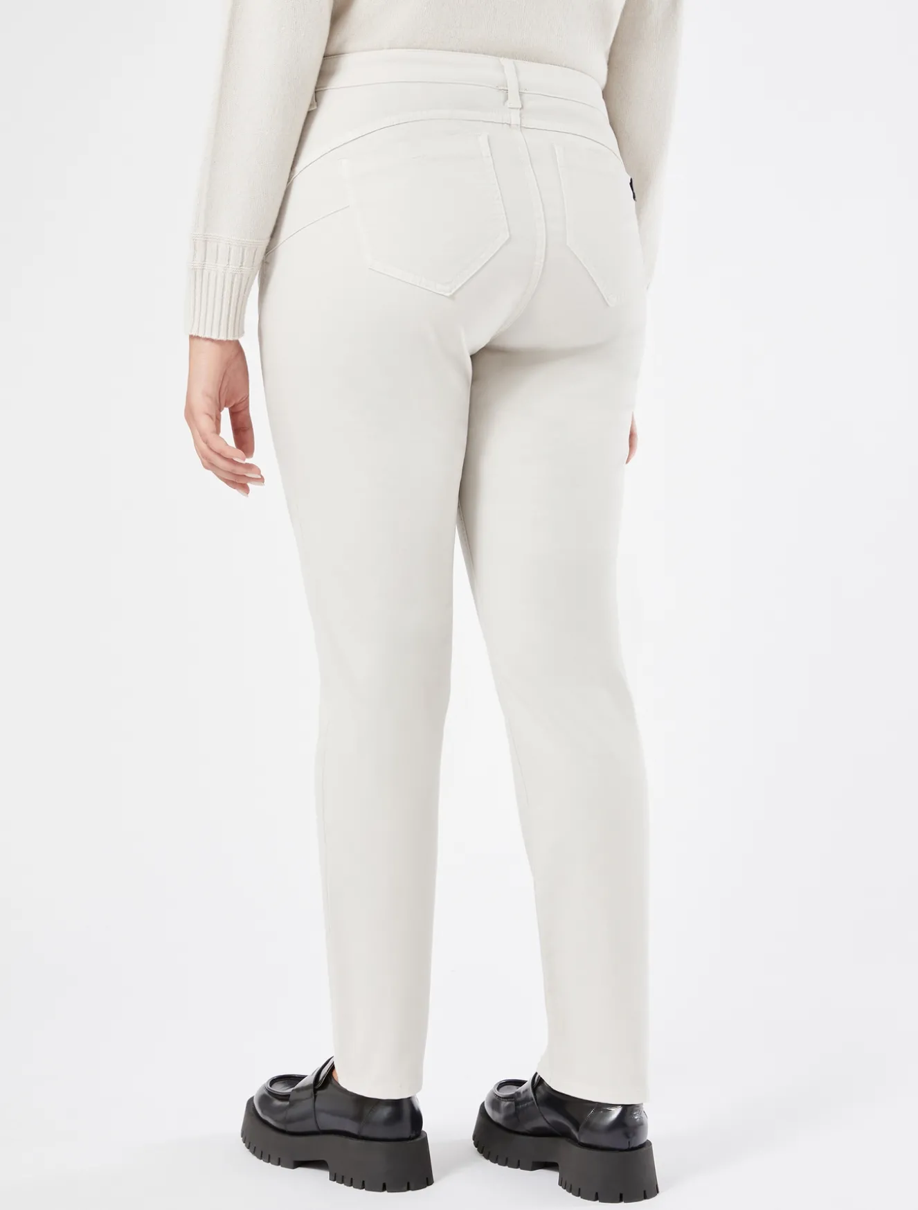 Design cinque tasche per i pantaloni in raso di cotone stretch smerigliato dalla linea shaping con tagli sul retro che valorizzano la silhouette.Il capo fa parte della collezione Persona by Marina Rinaldi.