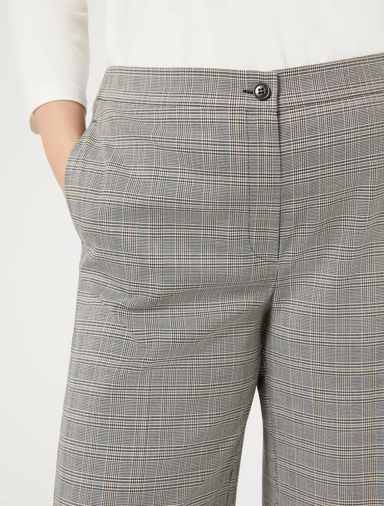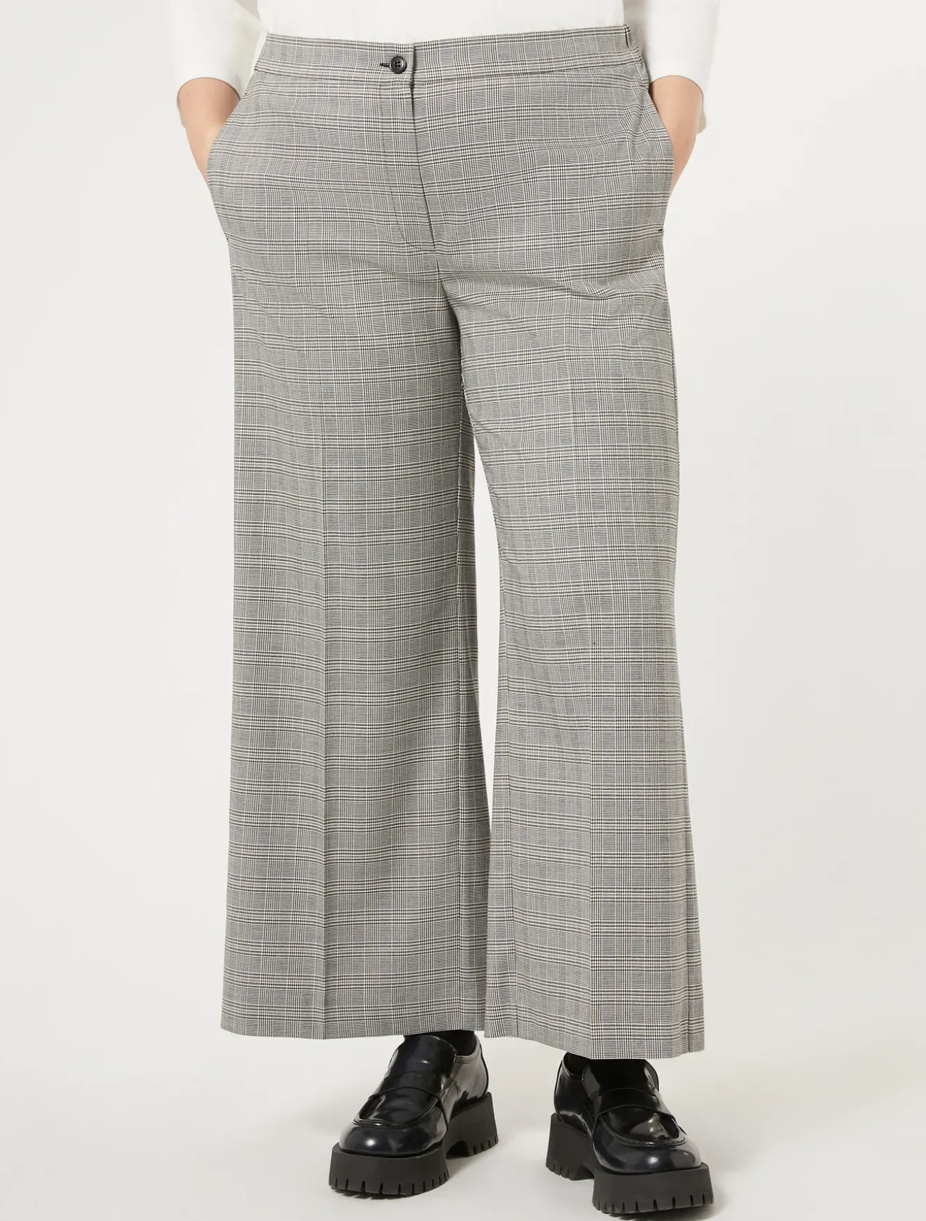 Volumi contemporanei per i pantaloni in tela di viscosa con taglio crop. Il dettaglio di piega stirata al centro definisce la struttura del capo e slancia la silhouette.Il capo fa parte della collezione Persona by Marina Rinaldi.