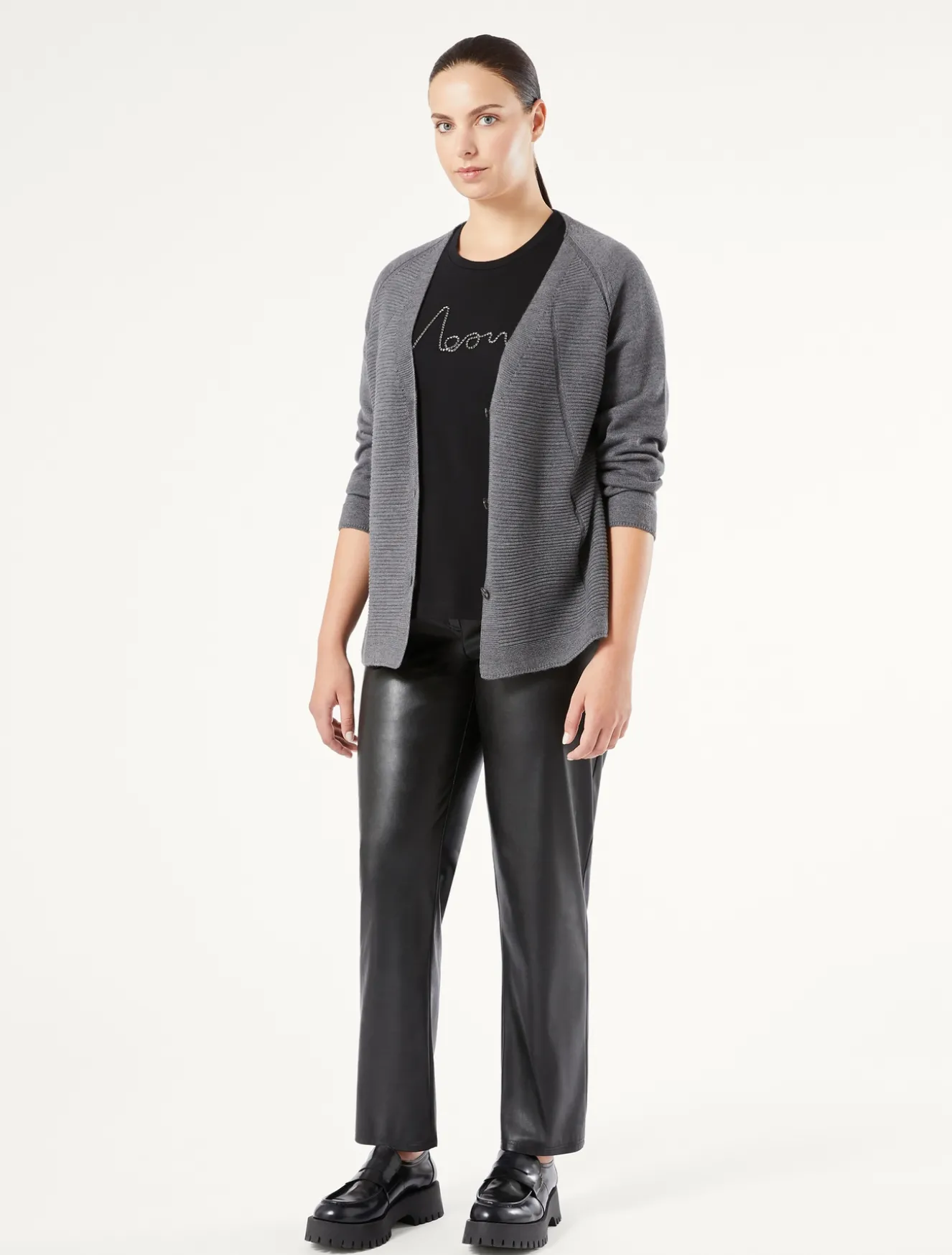 Versatili per più abbinamenti i pantaloni in jersey spalmato con elastico in vita sul retro e chiusura con zip e bottone.Il capo fa parte della collezione Persona by Marina Rinaldi.