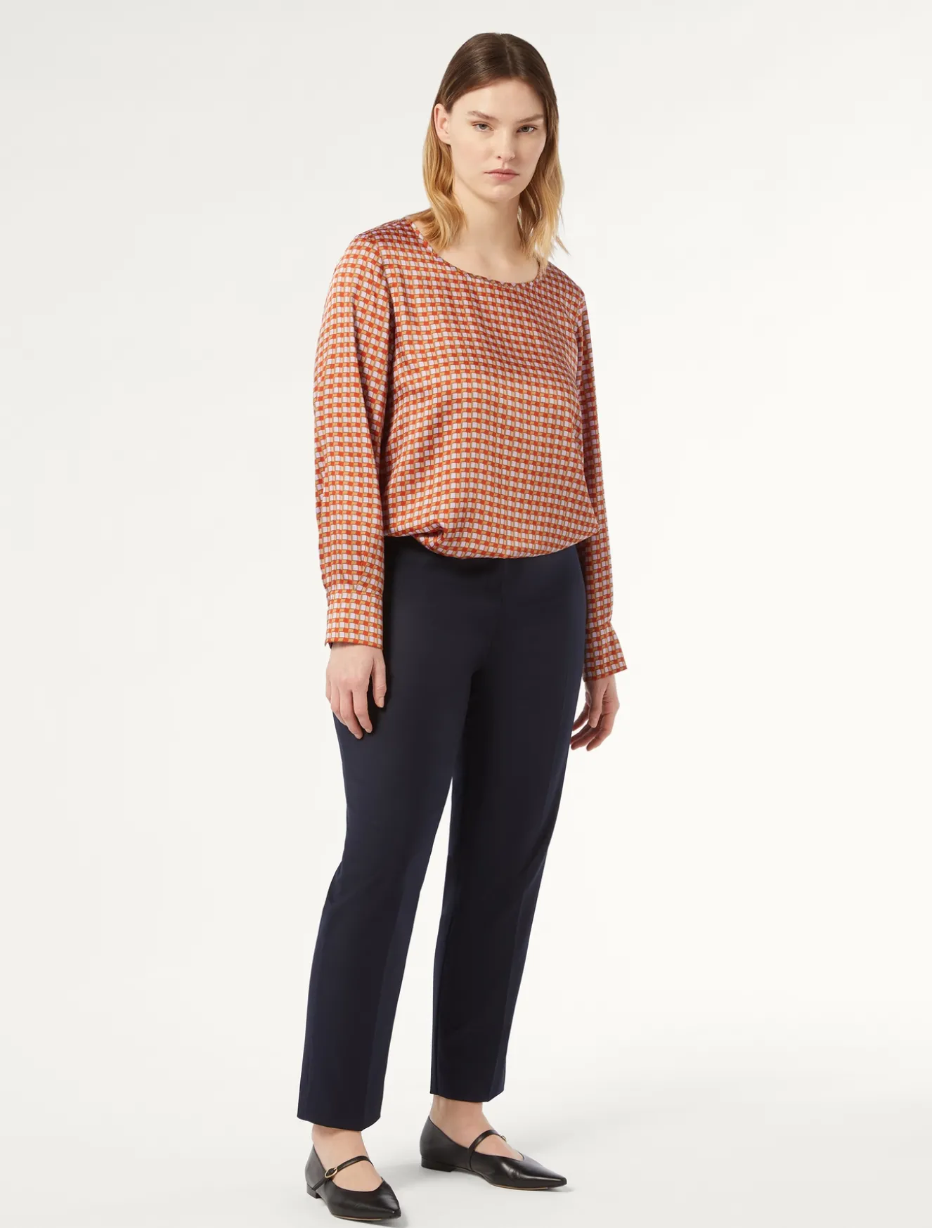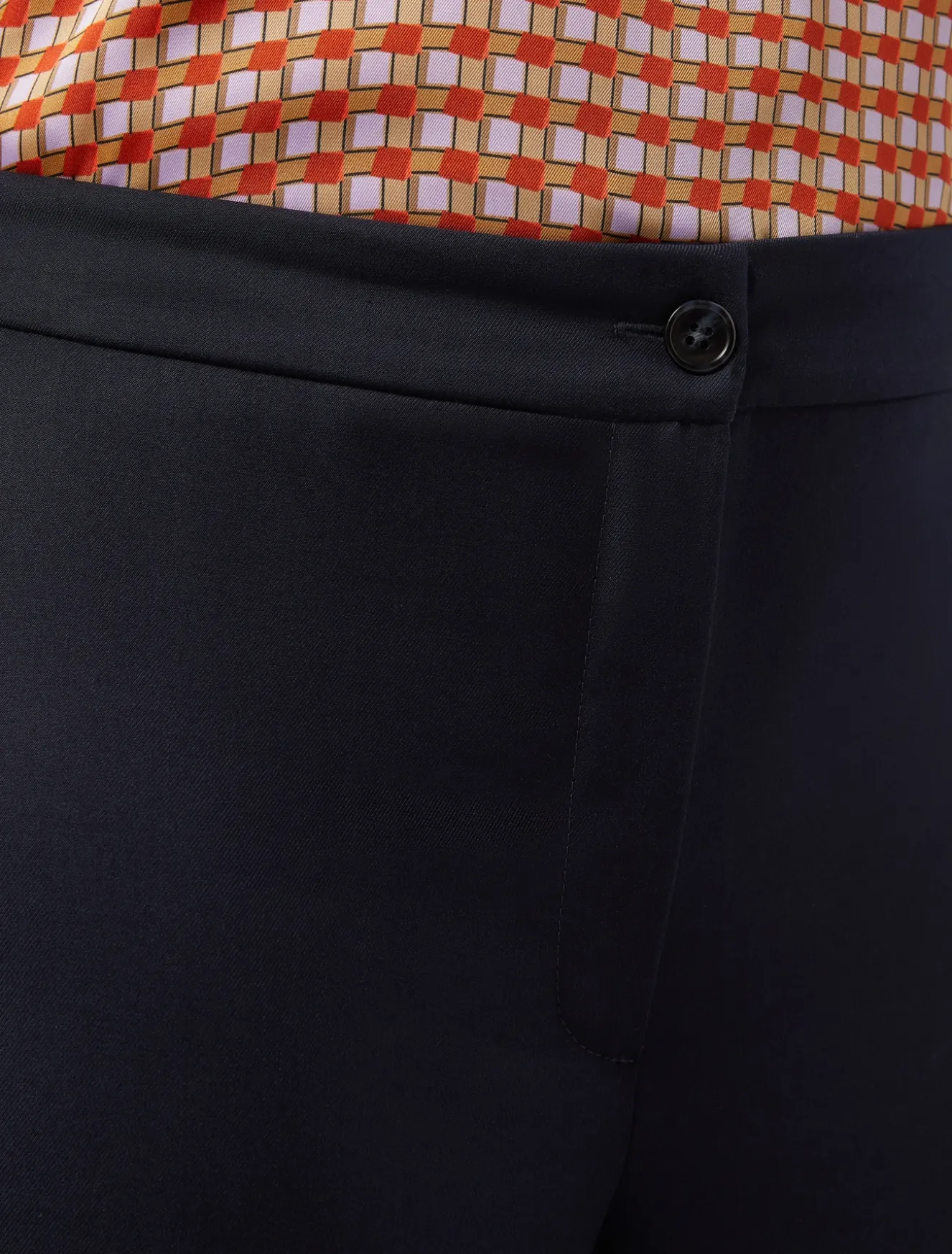 Da avere in guardaroba i pantaloni in twill di misto viscosa dalla linea a sigaretta, ideali per molteplici abbinamenti. Chiusura con zip e bottone. Il capo fa parte della collezione NOW by Marina Rinaldi.
