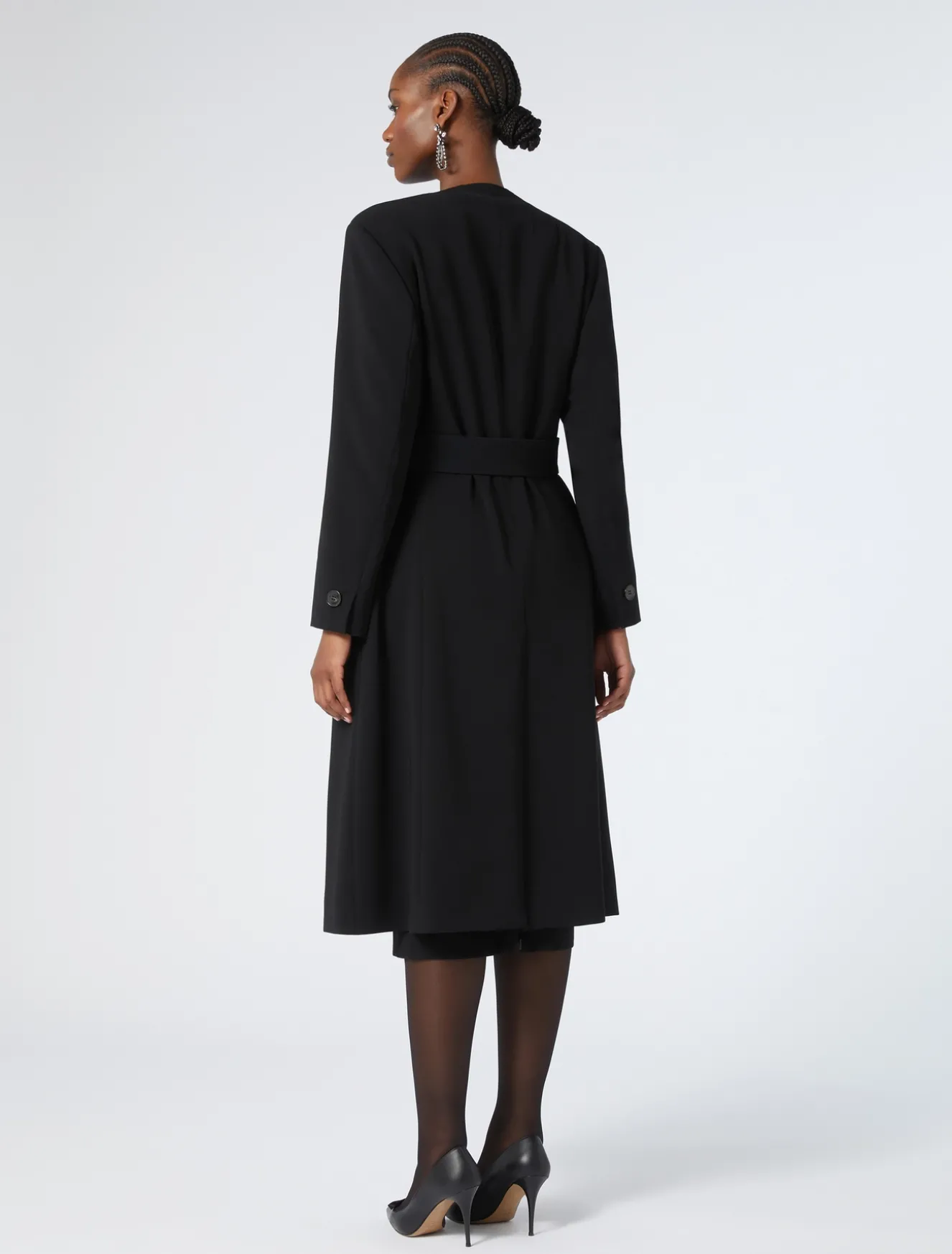 Eleganza versatile per lo spolverino in cady triacetato comfort. Lo puoi regolare in vita con la cintura in coordinato con fibbia ricoperta.