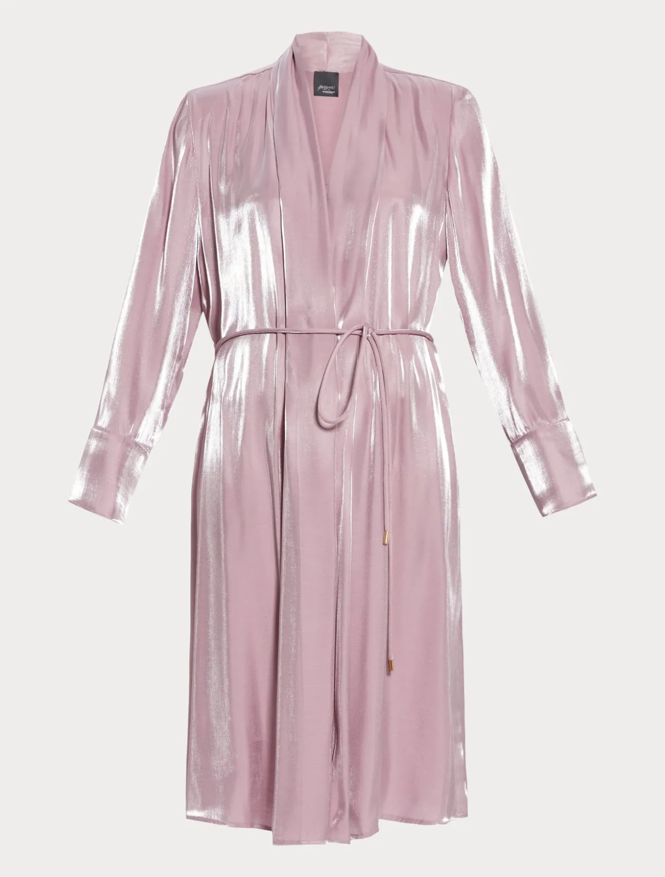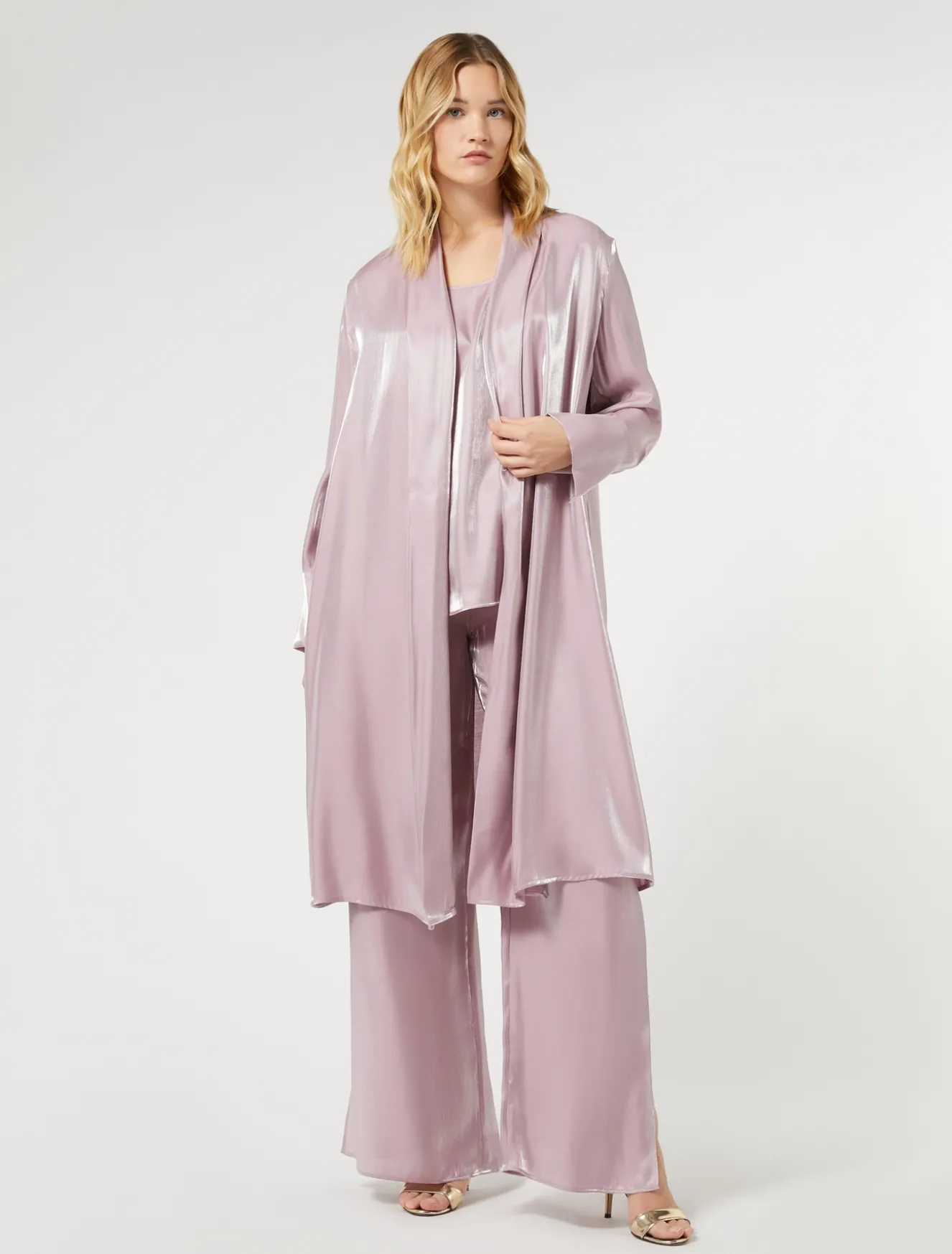 Fit avvolgente per lo spolverino in viscosa con collo a scialle e maniche lunghe con polsi impreziositi da bottoni gioiello. Con la cintura coordinata regoli il volume.Il capo fa parte della collezione Persona by Marina Rinaldi.