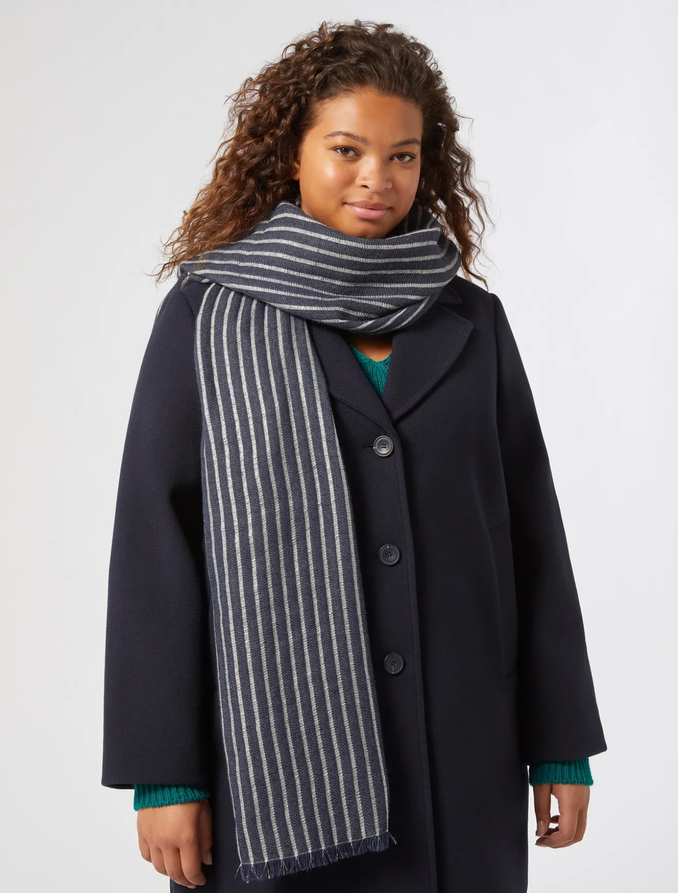 Pattern dallo stile senza tempo per la stola in tessuto gessato, versatile per più occasioni. L’accessorio fa parte della collezione NOW by Marina Rinaldi.