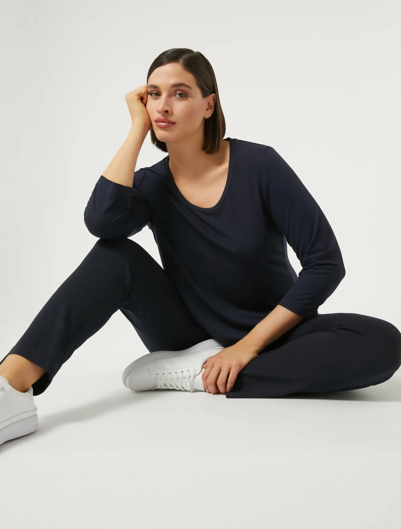 Easy con un tocco sofisticato, la T-shirt in jersey di viscosa dalla linea dritta. Da interpretare in una miriade di look.