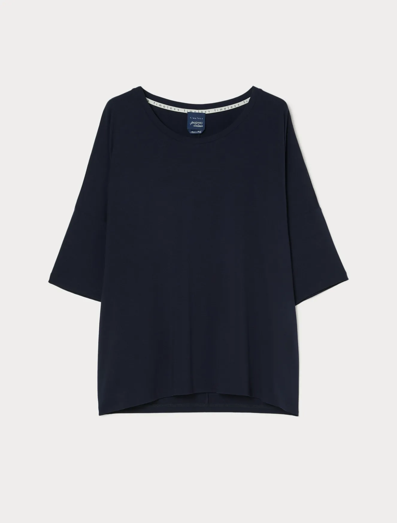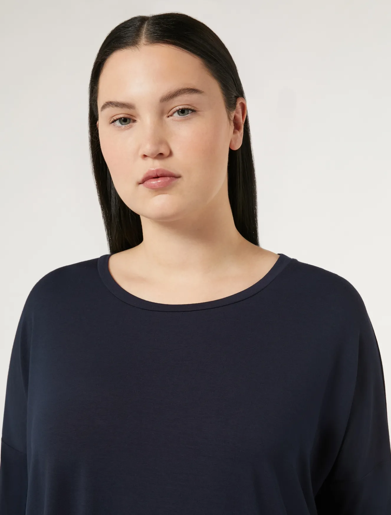 Linea over per la T-shirt in jersey di viscosa dal fascino versatile. Key-item del guardaroba quotidiano.