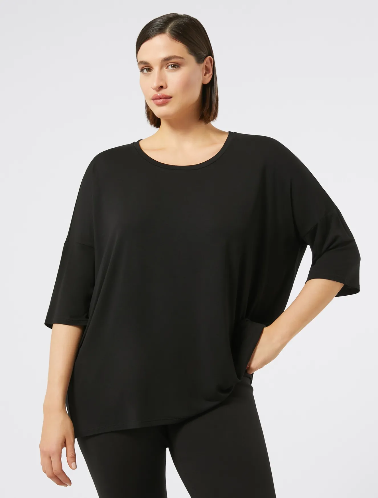 Linea over per la T-shirt in jersey di viscosa dal fascino versatile. Key-item del guardaroba quotidiano.