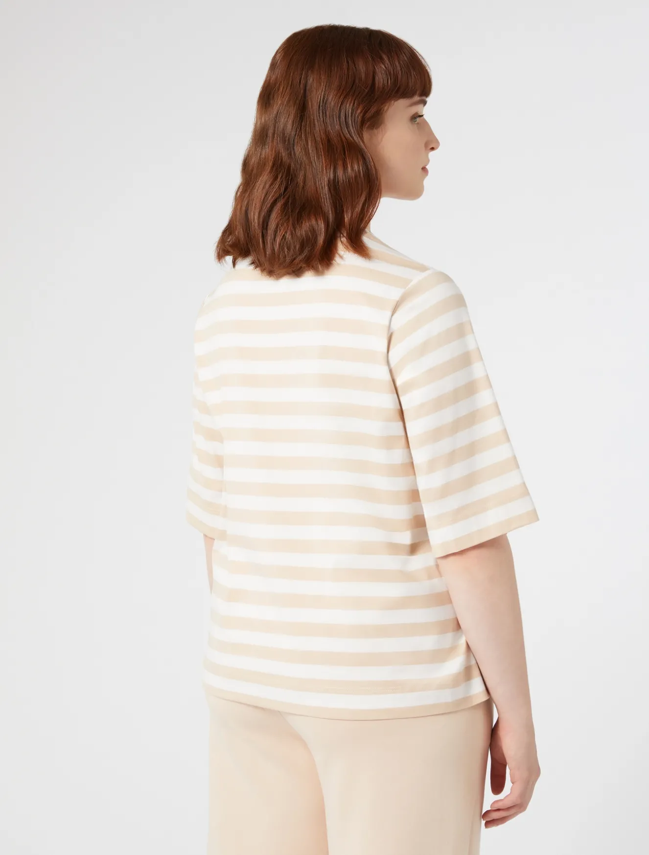 Essenziale del guardaroba casual la T-shirt in jersey di cotone mercerizzato, dalla linea dritta. Capo jolly da abbinare con facilità.