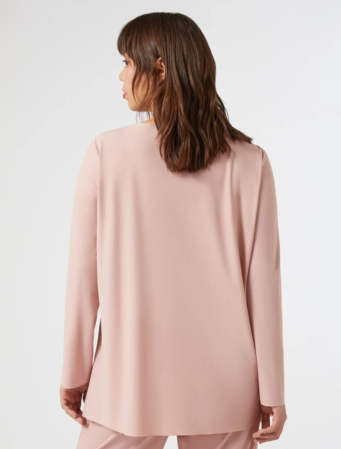 Linea essenziale e lavorazioni ricercate per la T-shirt in jersey con fondo a taglio vivo e termosaldature per collo e spacchi davanti. Basta indossarla per rendere lo stile contemporaneo.