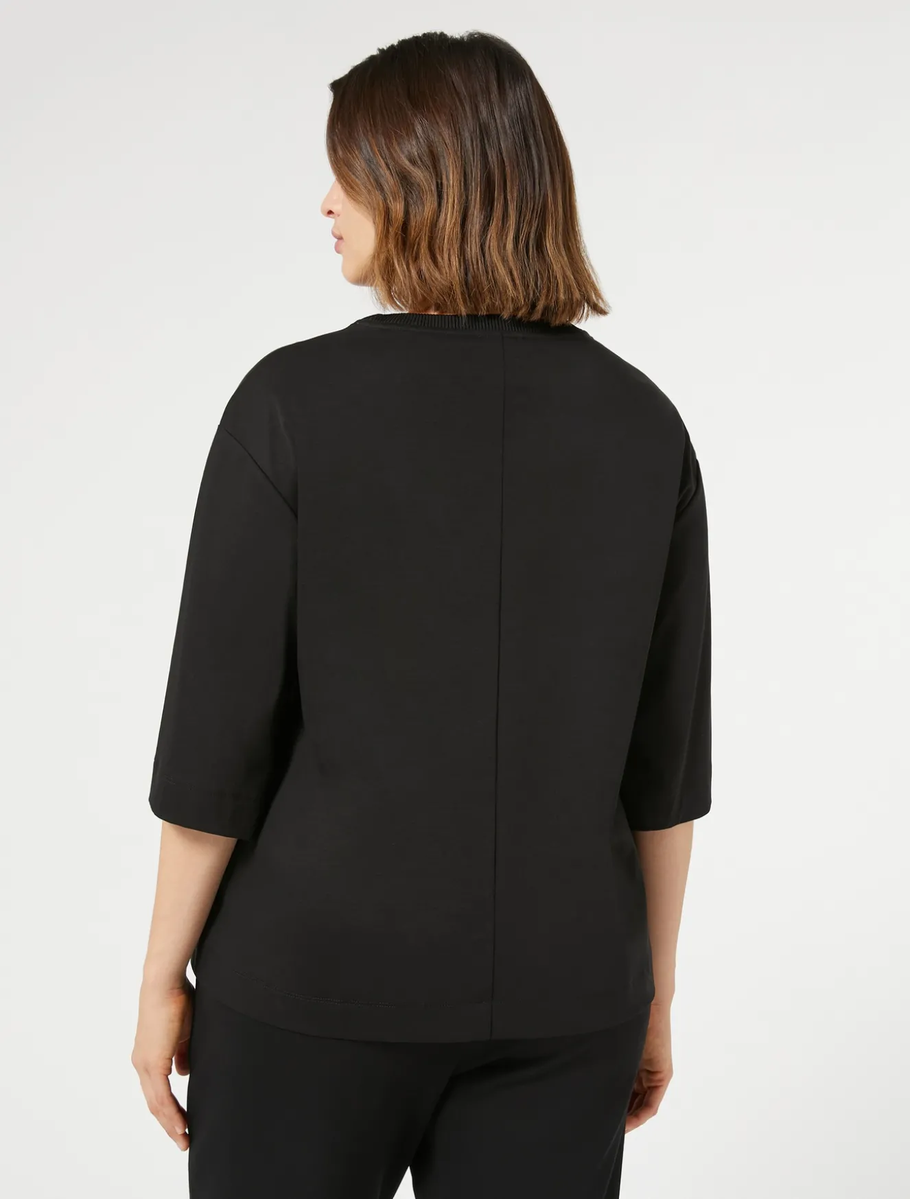 Essenziale e contemporanea la T-shirt in jersey interlock di cotone mercerizzato con collo tondo rifinito in costina di maglia. Da interpretare in una miriade di look.Il capo fa parte della collezione Voyage Relax.