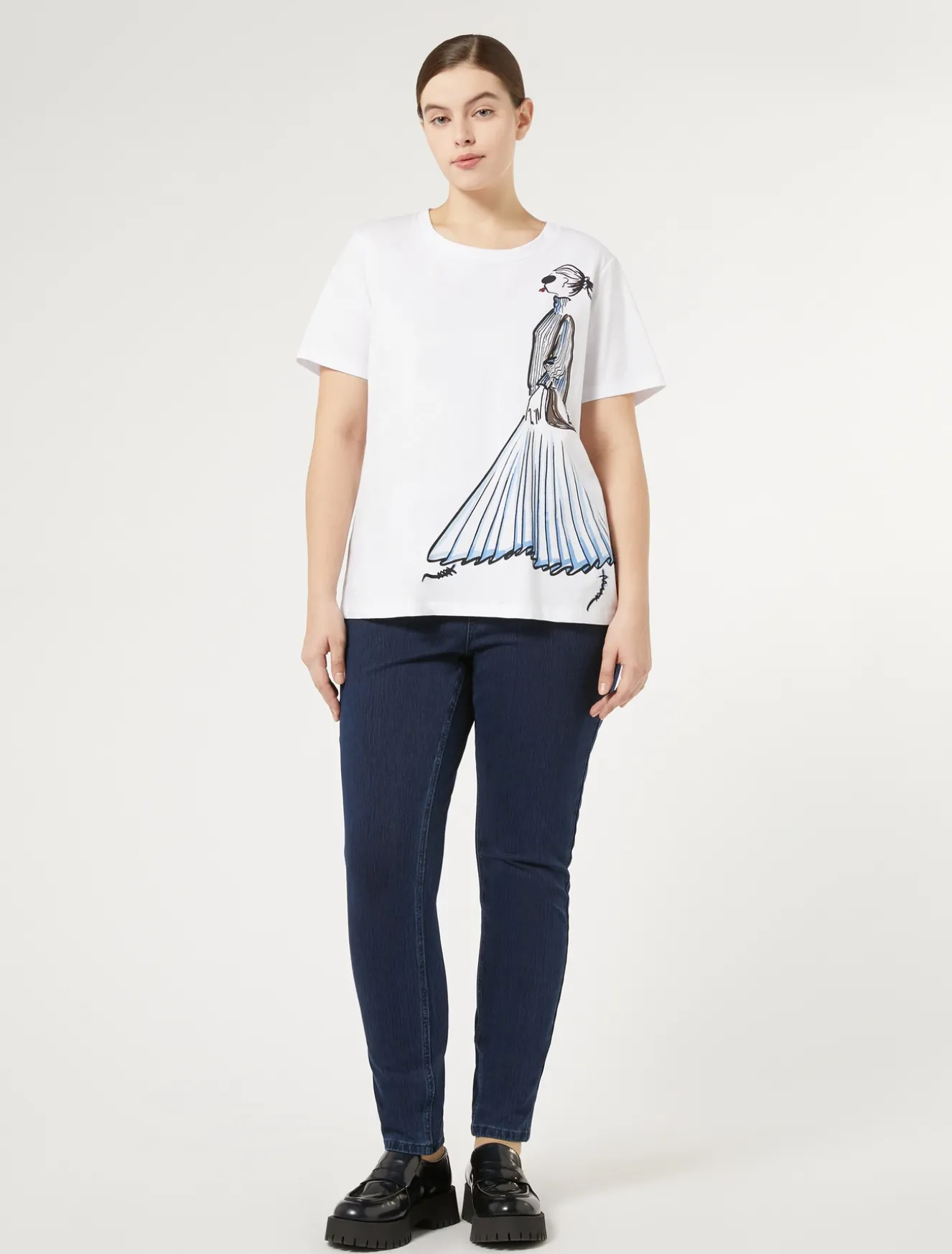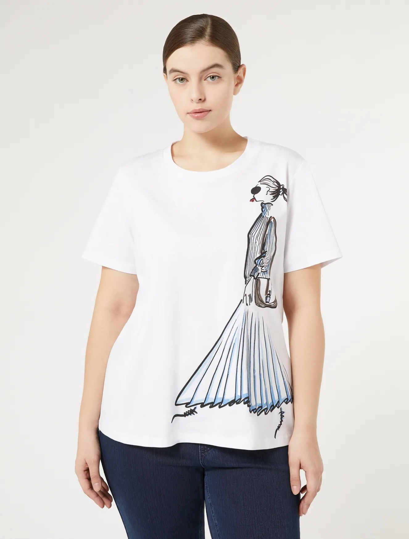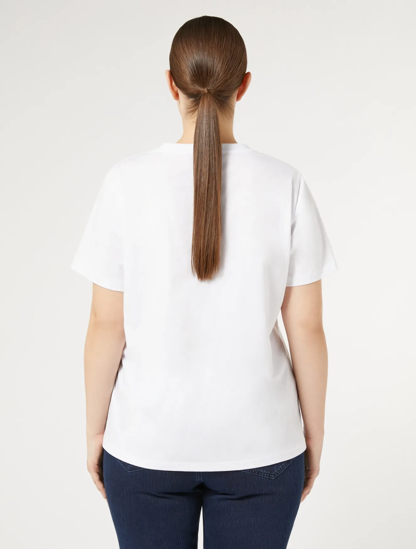 Dona carattere allo stile la T-shirt in jersey con stampa davanti. Perfetta per arricchire il tuo repertorio di T-shirt.Il capo fa parte della collezione Marina Sport.