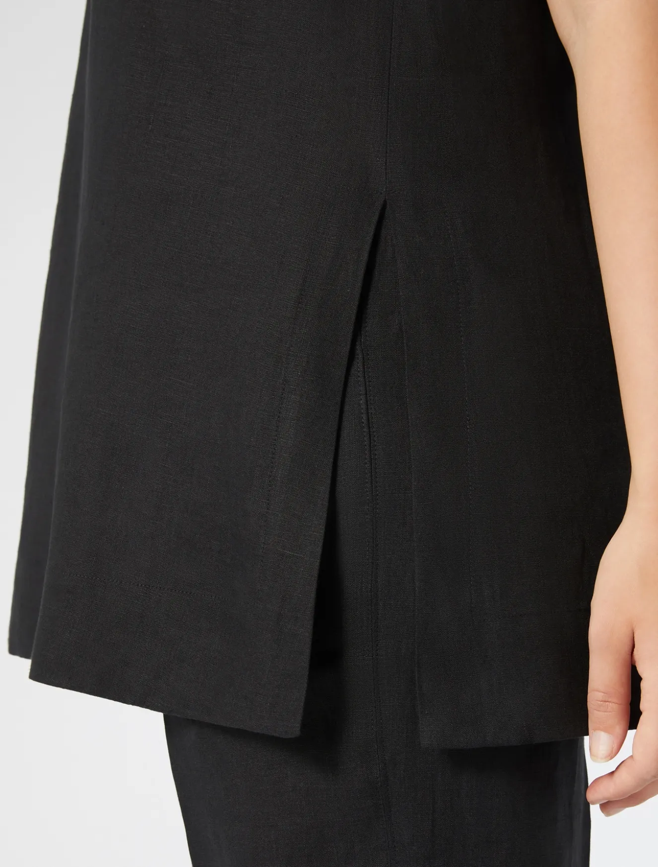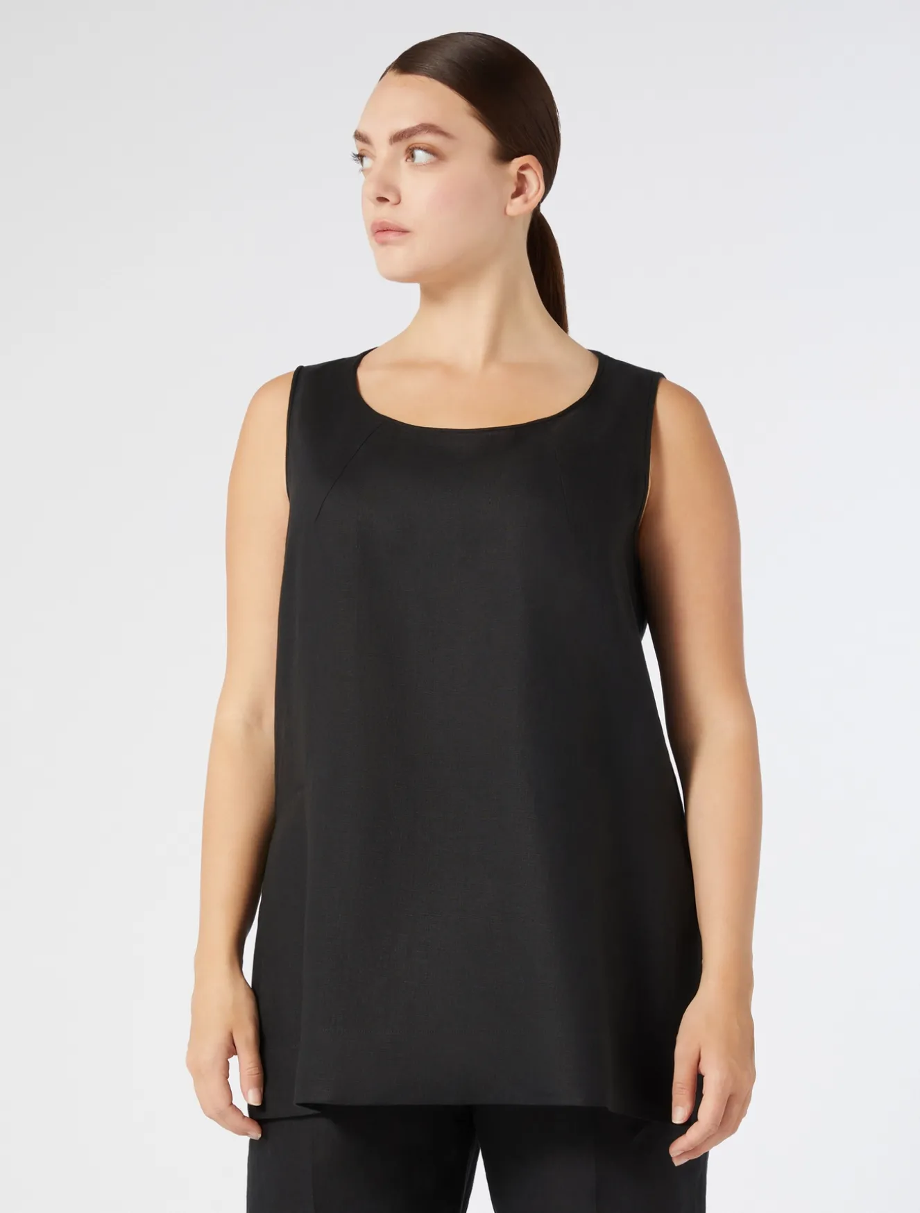 È rifinito da impunture invisibili il top in tela leggera di puro lino délavé, dalla linea dritta. Fresco, versatile e ricercato, ideale per completare qualsiasi look daily, anche in abbinamento a blazer, pantaloni o gonna in coordinato. Il capo fa parte della main collection Marina Rinaldi.