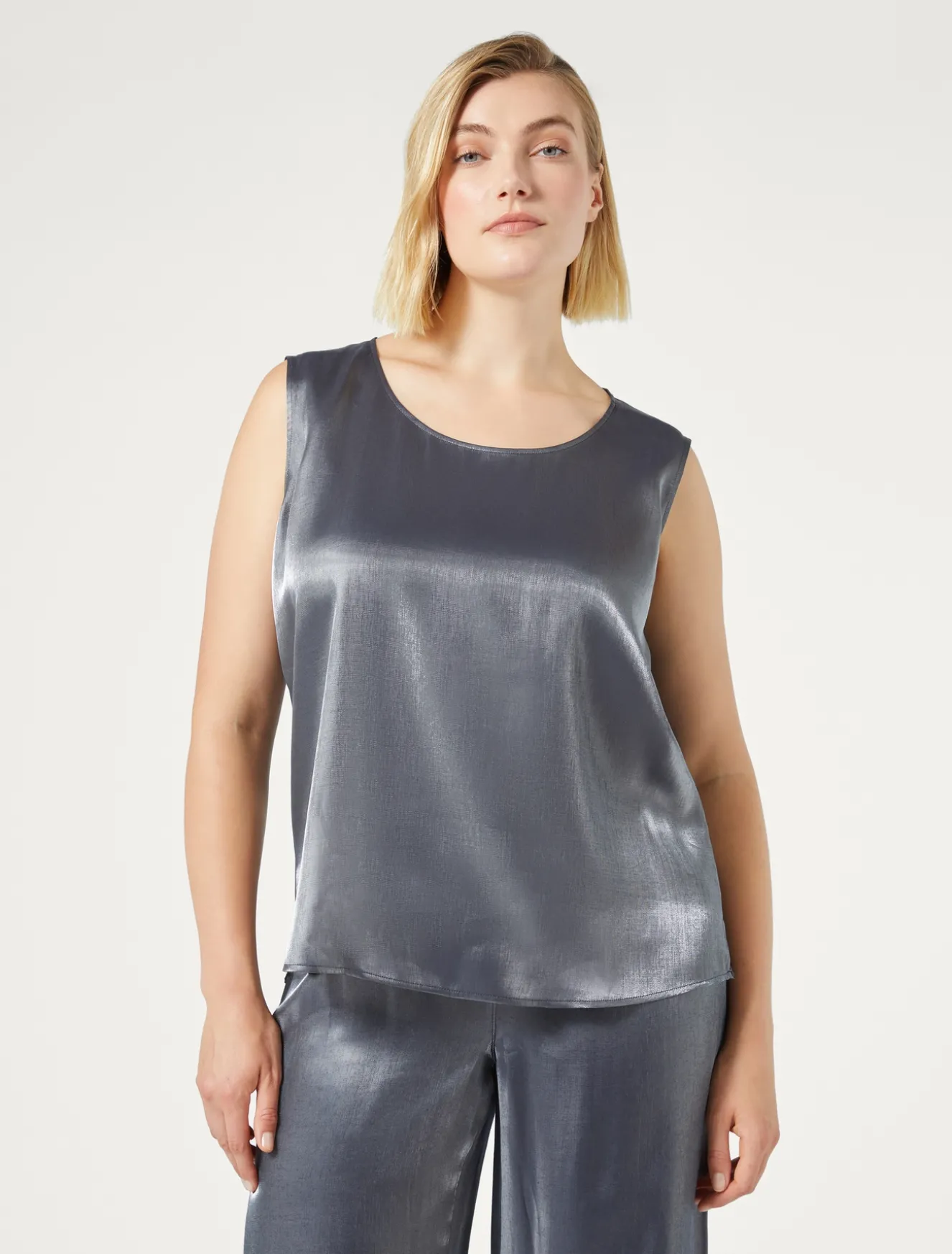Easy da abbinare il top in viscosa con scollo tondo, dalla linea dritta. Ha maniche corte che puoi applicare con un semplice intervento di sartoria. Puoi indossarlo da solo, come sottogiacca o in layering.Il capo fa parte della collezione Persona by Marina Rinaldi.