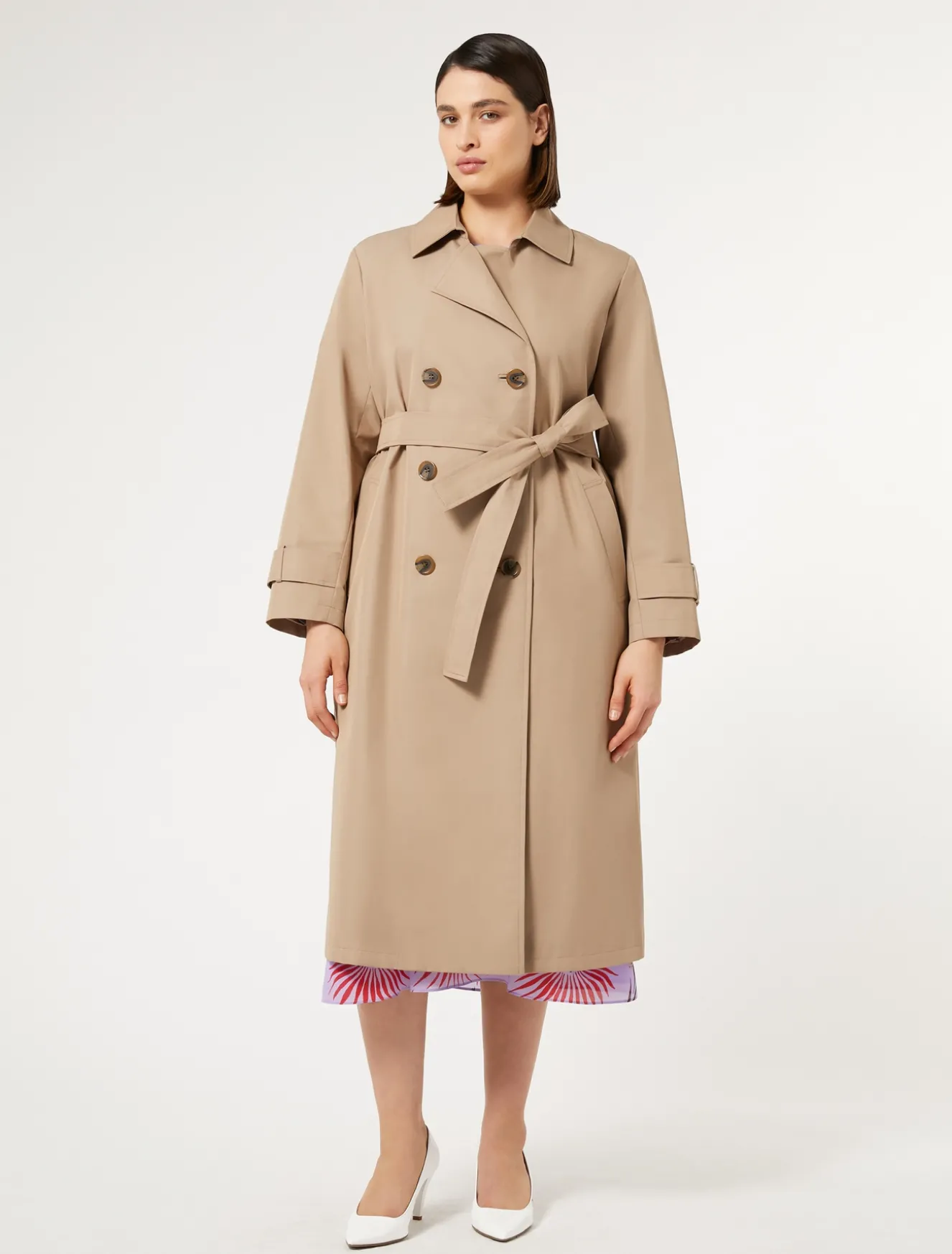 Accessoria questo trench come preferisci grazie al colletto ricamato staccabile e alla passamaneria di piume rimovibile lungo l’apertura. Cintura in vita in coordinato.Il capo fa parte della main collection Marina Rinaldi.