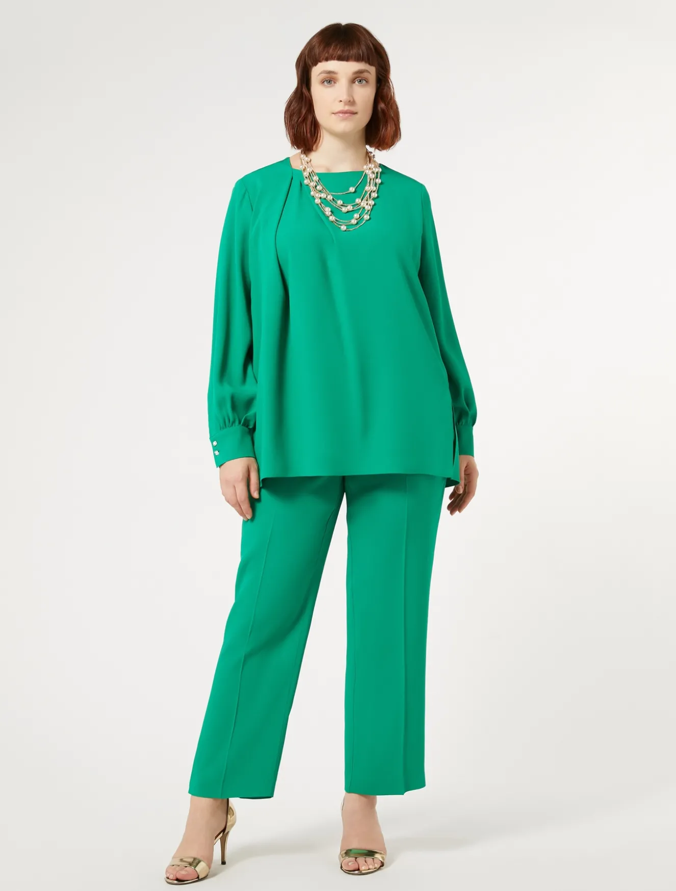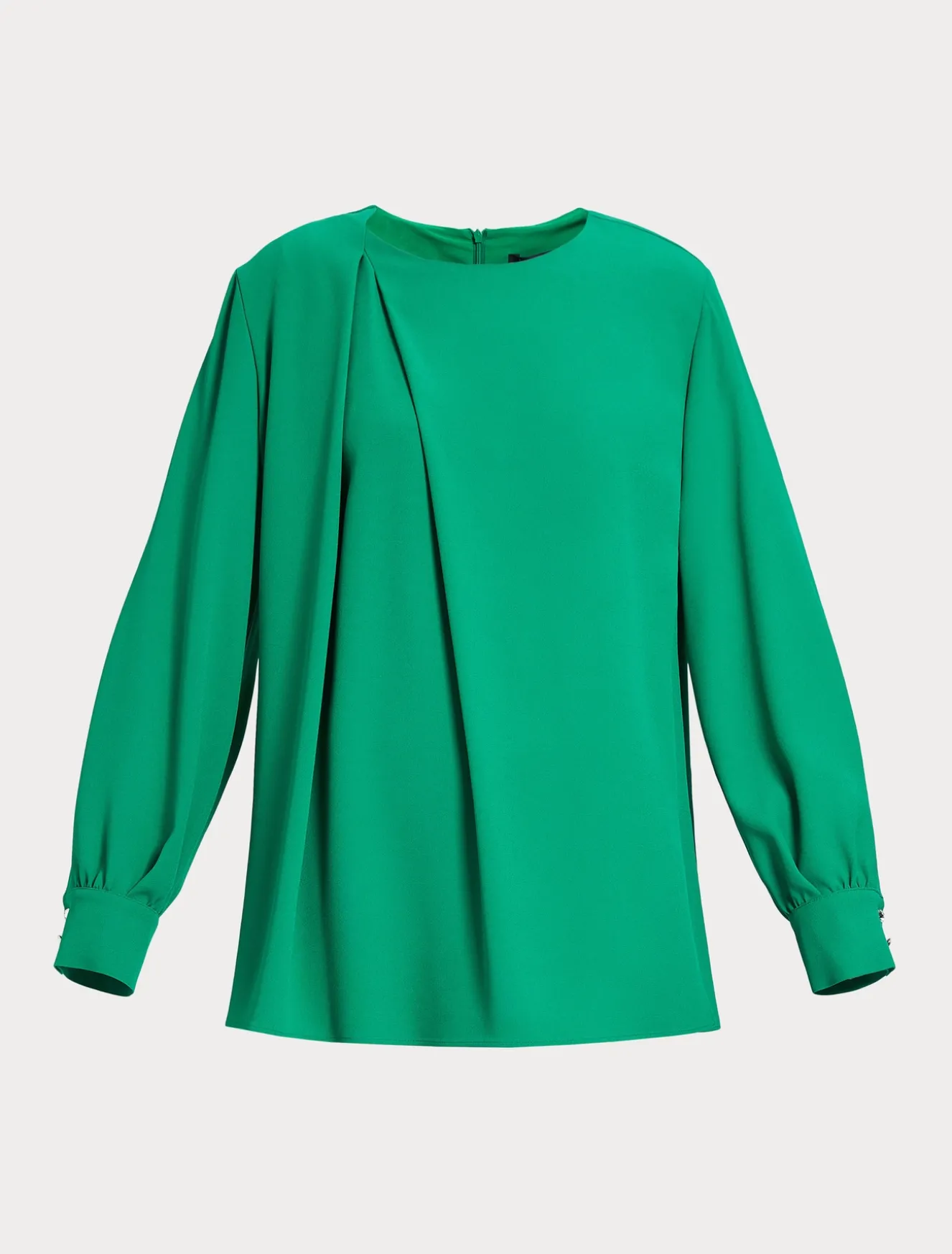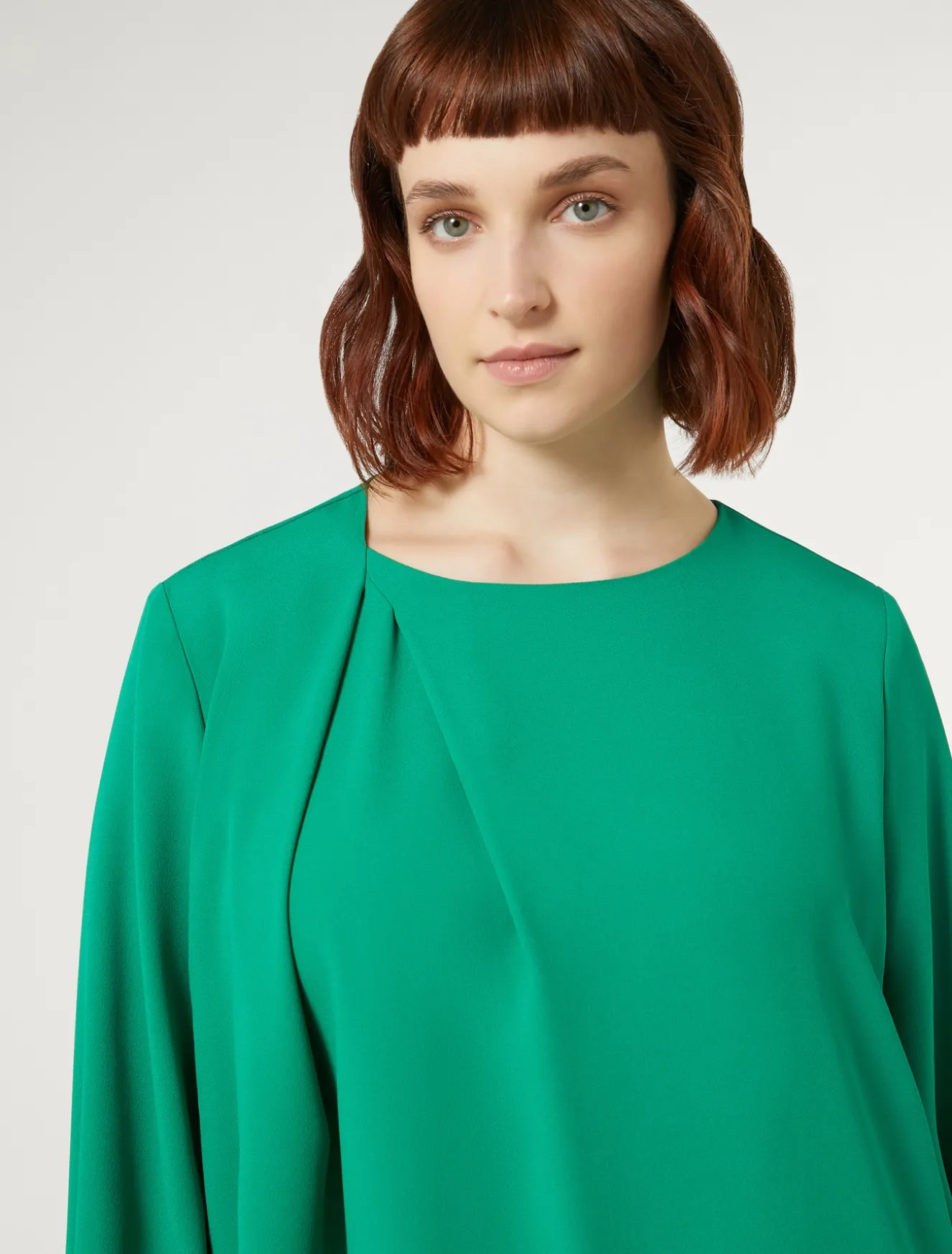 È costruita con un motivo di contropiega profonda asimmetrica la tunica di linea dritta in crêpe envers satin opaco. Basta indossarla per dare movimento allo stile, anche in abbinamento ai pantaloni in coordinato.Il capo fa parte della collezione Elegante.