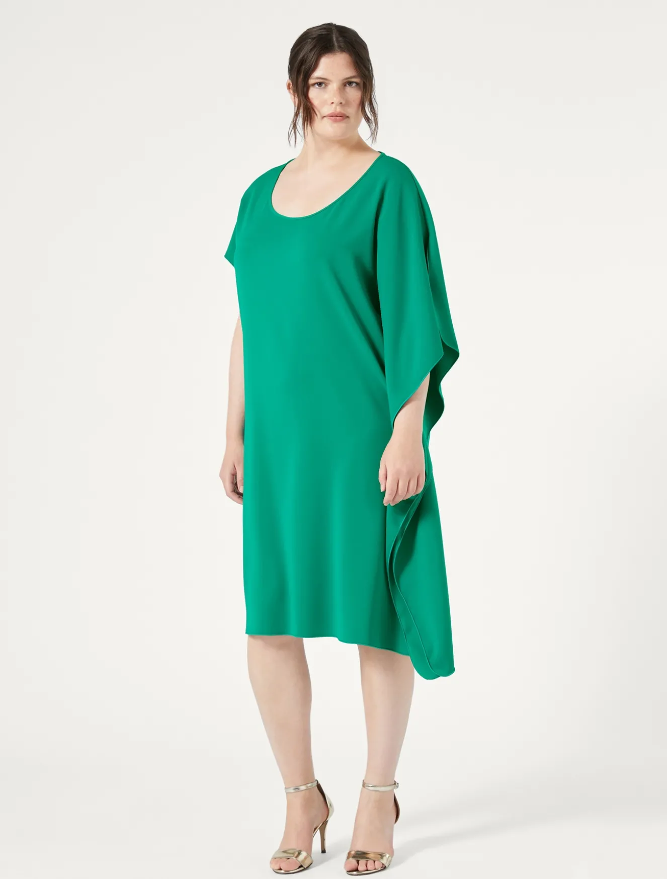 Avvolgente ed elegante l’abito in cady dalla linea a kaftano, con scollo rotondo e maniche kimono. Lo spacco sulla spalla sinistra aggiunge carattere al look.Il capo fa parte della collezione Persona by Marina Rinaldi.
