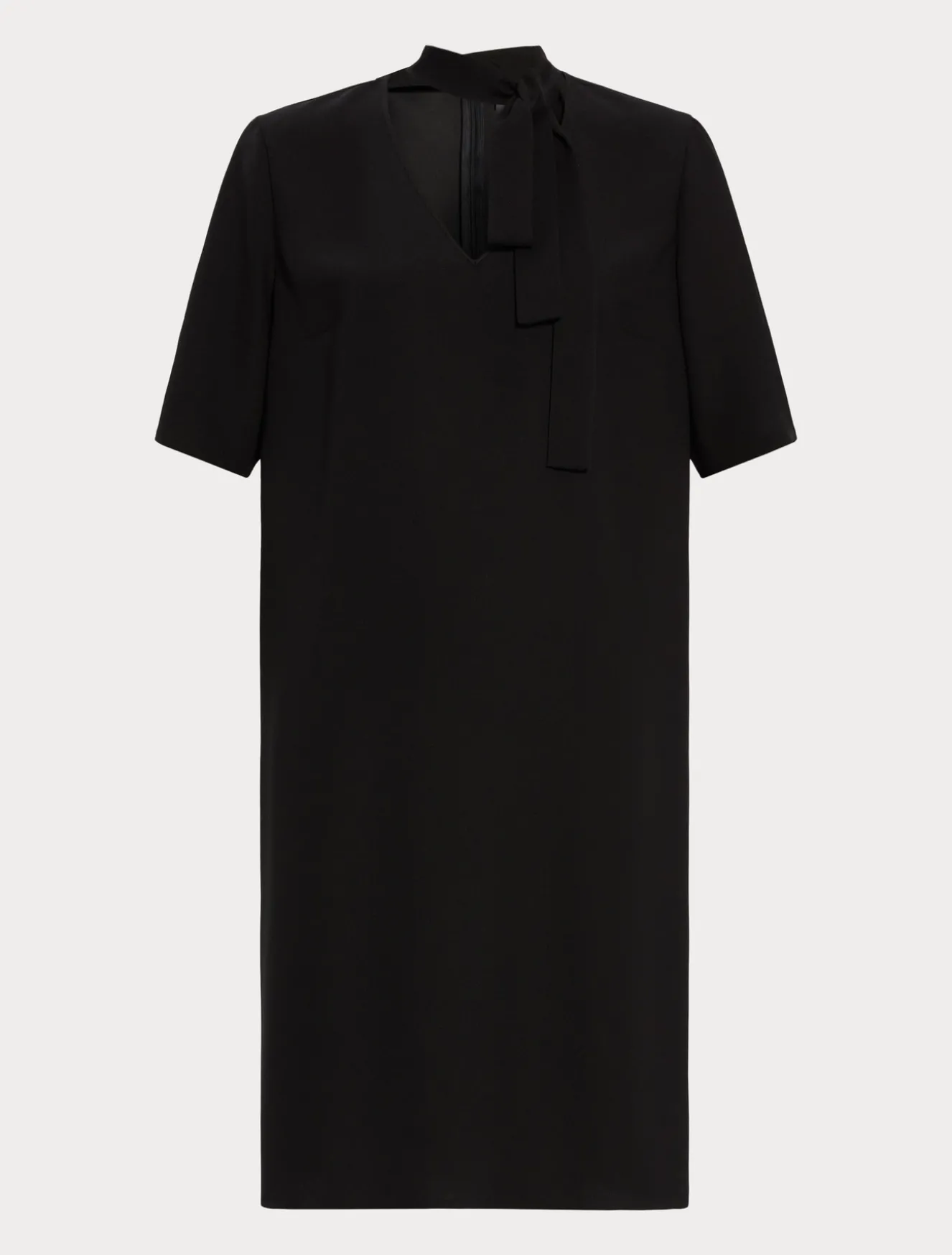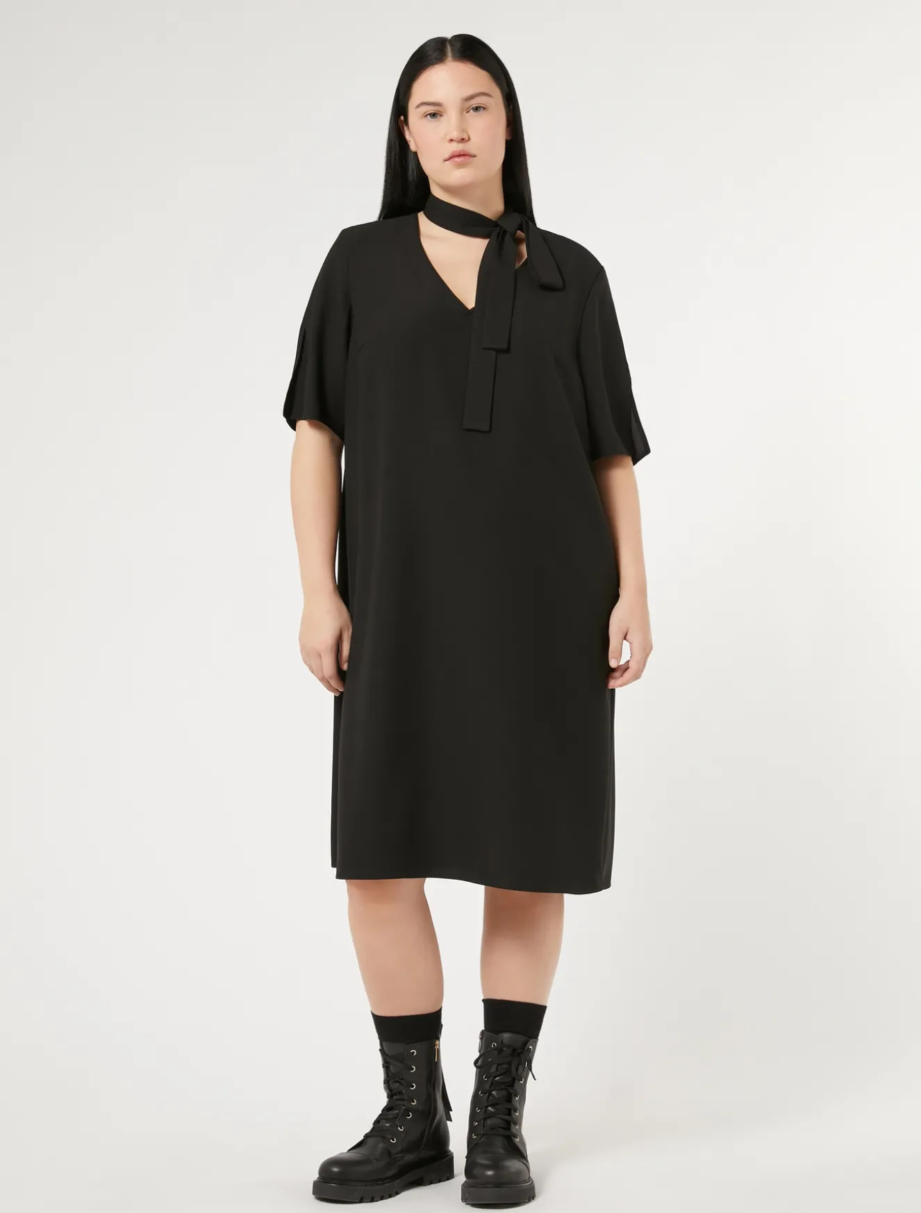 Dettagli ad hoc per l’abito in crêpe di envers satin con scollo a V e maniche corte con spacchetti. Impreziosisci il look con il foulard e la cintura coordinati.Il capo fa parte della collezione Persona by Marina Rinaldi.