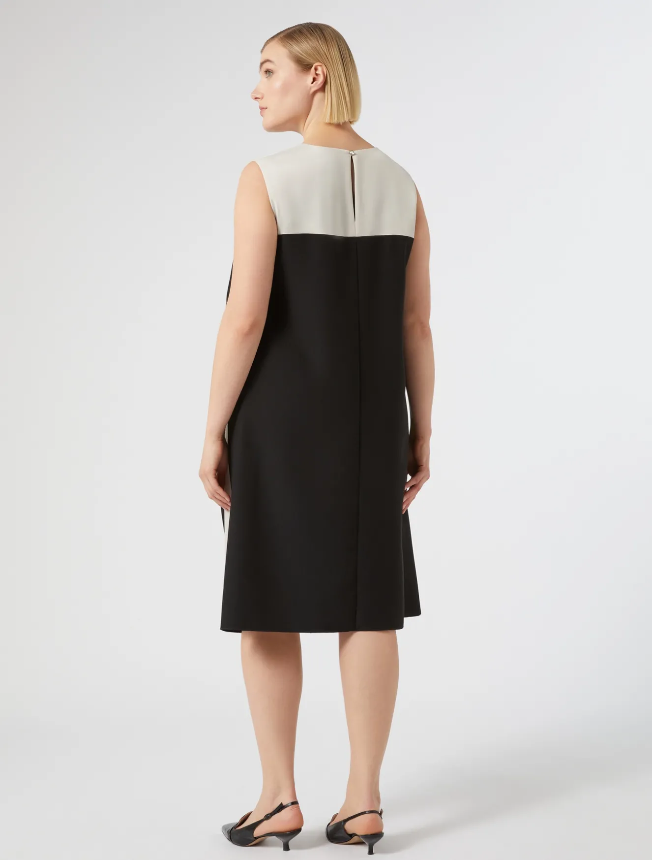 Giochi di lucido e opaco per l’abito A-line in crêpe envers satin, con carré e fianchi in tessuto lucido. Puoi applicare le maniche corte in dotazione con un semplice intervento di sartoria dedicato.