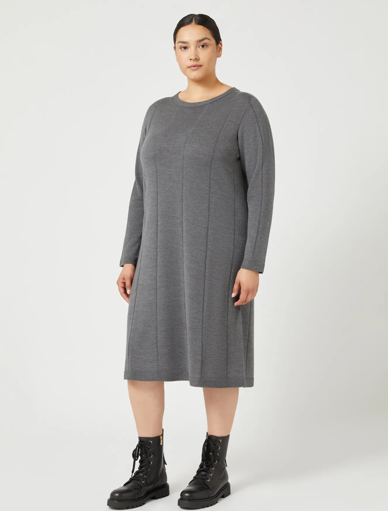 Caldo e femminile l’abito in misto lana con collo tondo e maniche lunghe. La rifinitura a punto links dona carattere alla silhouette.Il capo fa parte della collezione Persona by Marina Rinaldi.