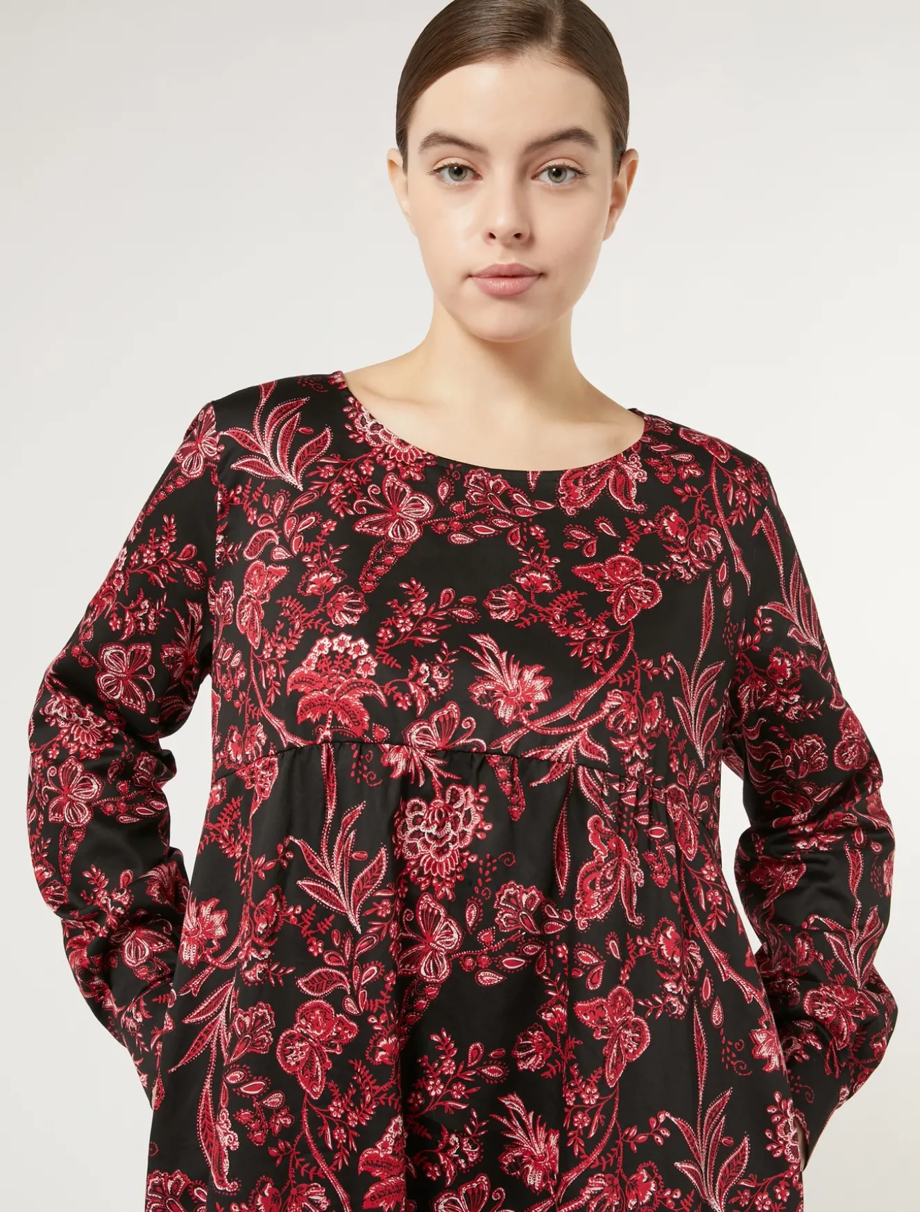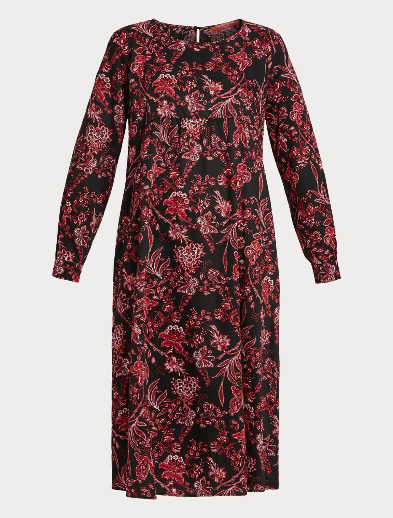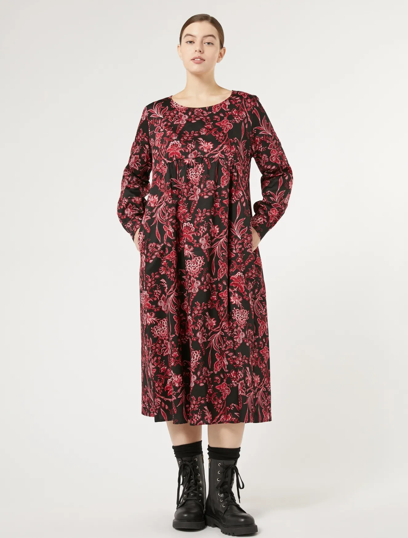 Taglio a impero con arricciatura per l’abito lungo in popeline con stampa esclusiva. Per dare una nota grafica allo stile quotidiano.Il capo fa parte della collezione Marina Sport.