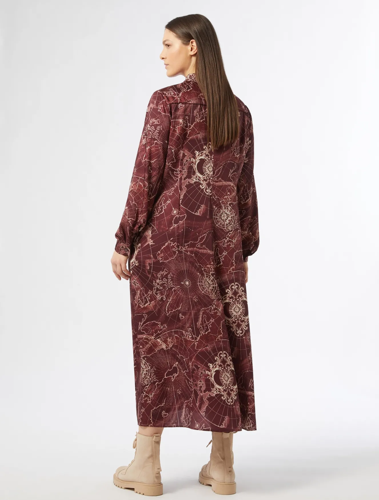 Stampa esclusiva per l’abito lungo chemisier in twill. Pinces e carré sul retro definiscono il design.Il capo fa parte della collezione Marina Sport.