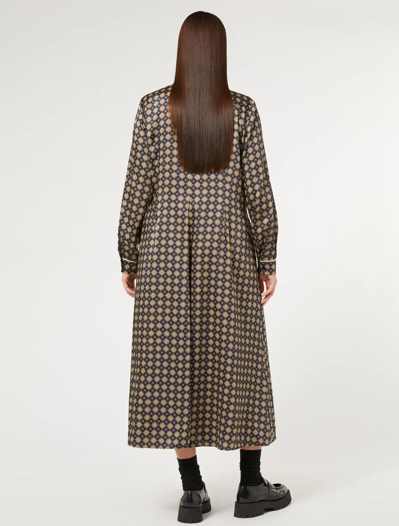 Stampa esclusiva per l’abito lungo chemisier in twill. È arricchito all’apertura e ai polsi da un dettaglio di piping a contrasto.Il capo fa parte della collezione Marina Sport.