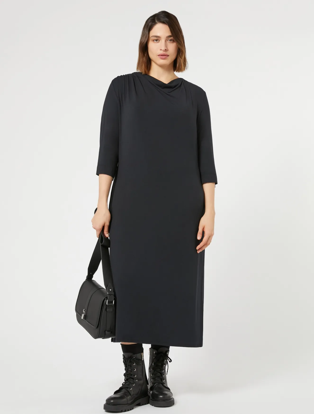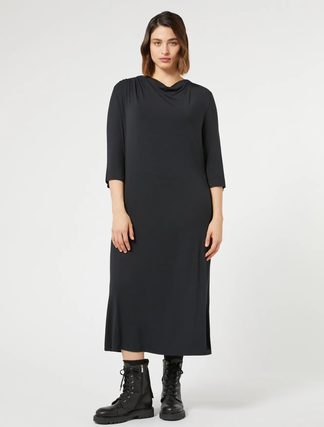 Un drappeggio asimmetrico definisce il design dell’abito longuette in jersey modal mercerizzato. Perfetto per elevare tutti i tuoi look casual.Il capo fa parte della collezione Voyage Relax.