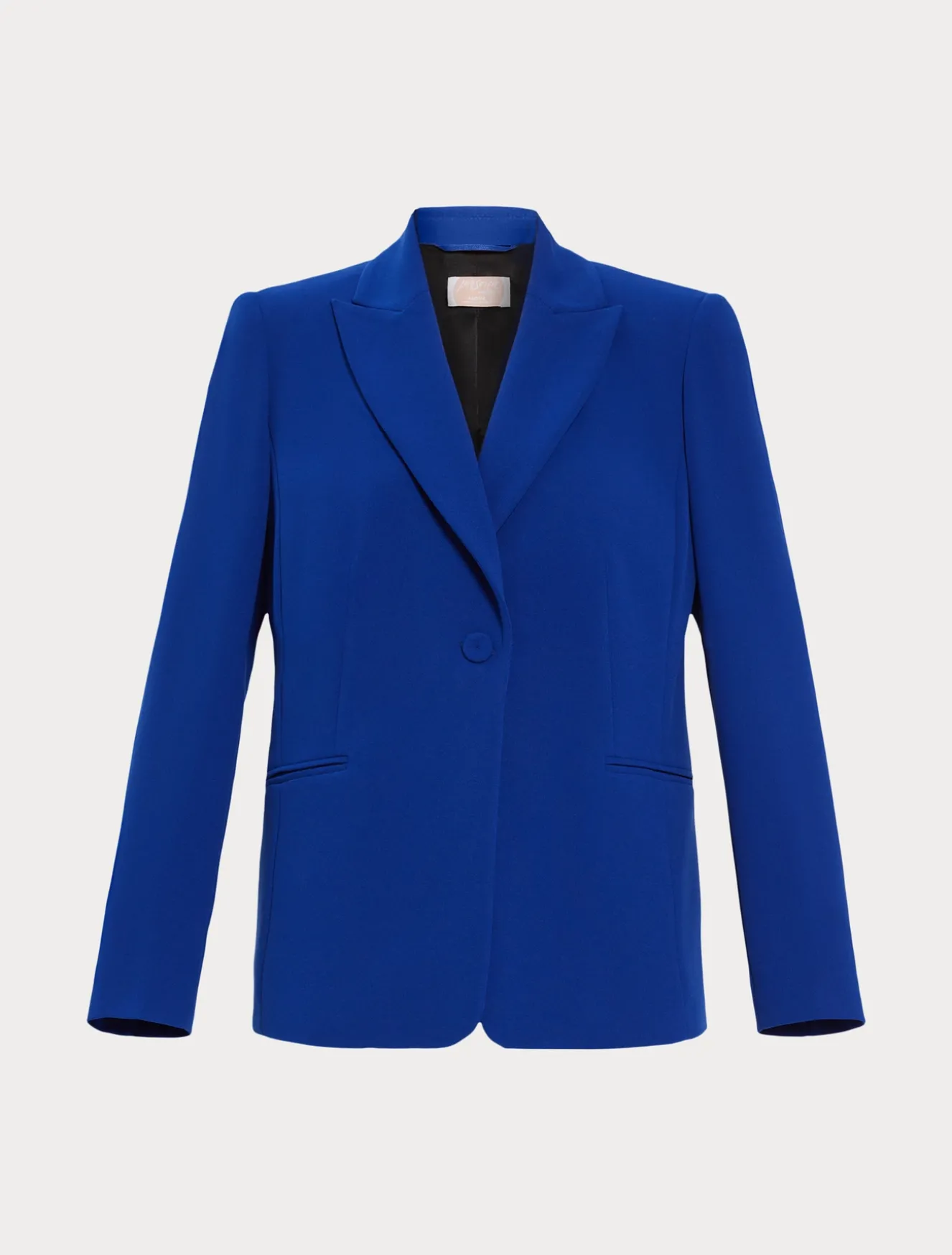 Linee femminili per il blazer in jersey stretch con rever a lancia, maniche lunghe e tasche a filetto. La chiusura monopetto aggiunge una nota distinta.Il capo fa parte della collezione N.O.W.