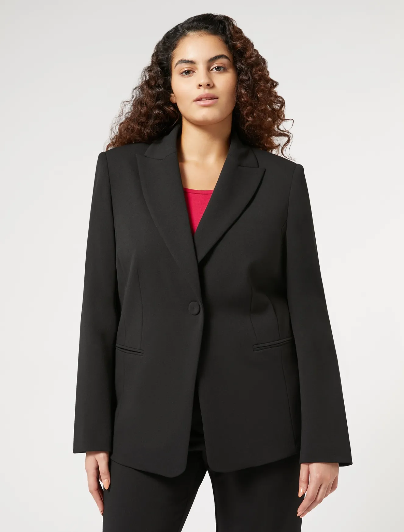 Linee femminili per il blazer in jersey stretch con rever a lancia, maniche lunghe e tasche a filetto. La chiusura monopetto aggiunge una nota distinta.Il capo fa parte della collezione N.O.W.