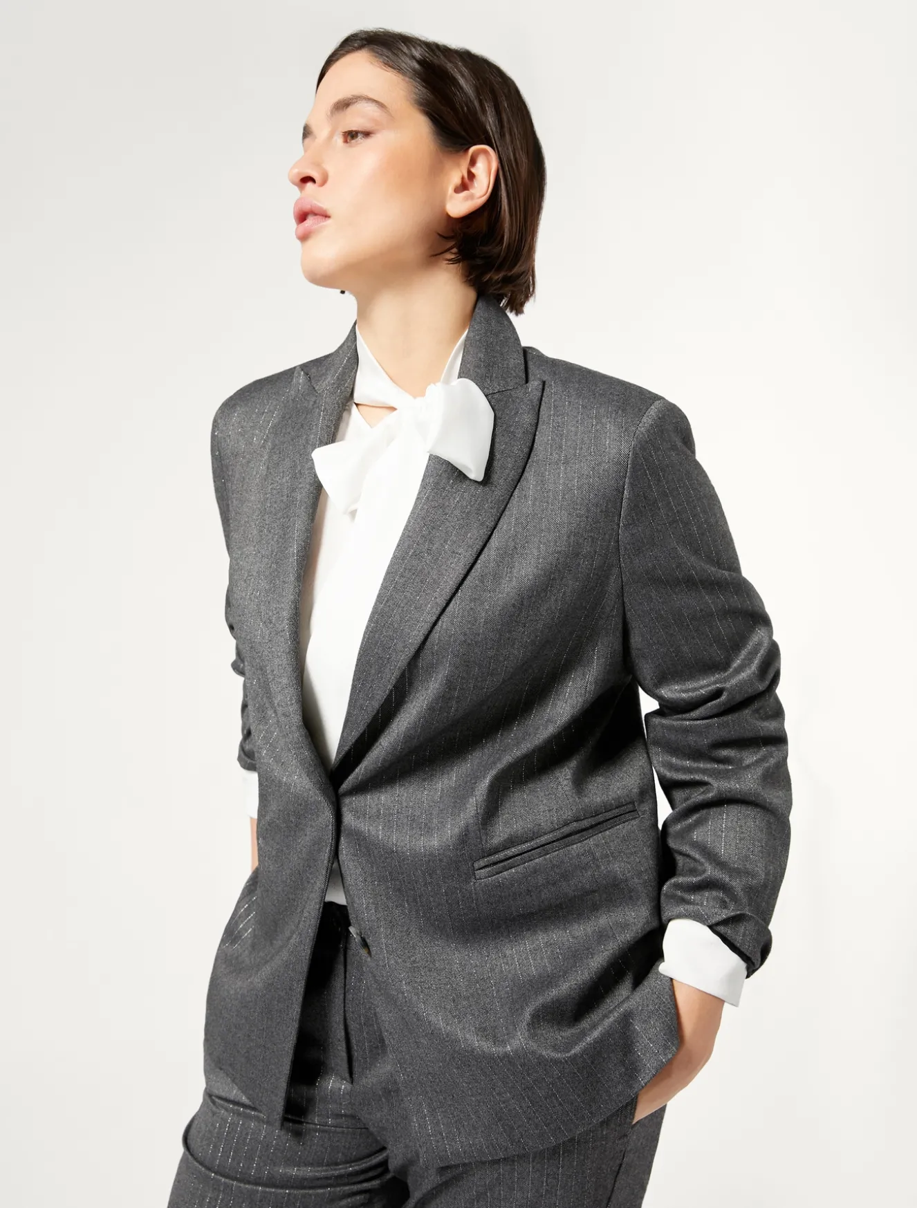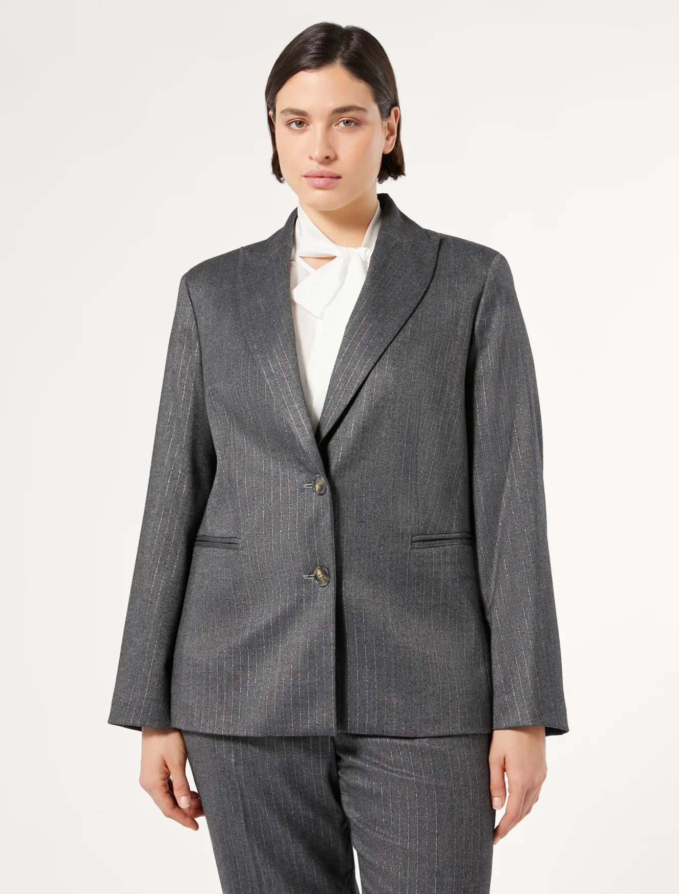 Un passe-partout di stile il blazer in tessuto gessato lurex in misto viscosa. Perfetto per i look quotidiani e le occasioni speciali.Il capo fa parte della collezione Persona by Marina Rinaldi.