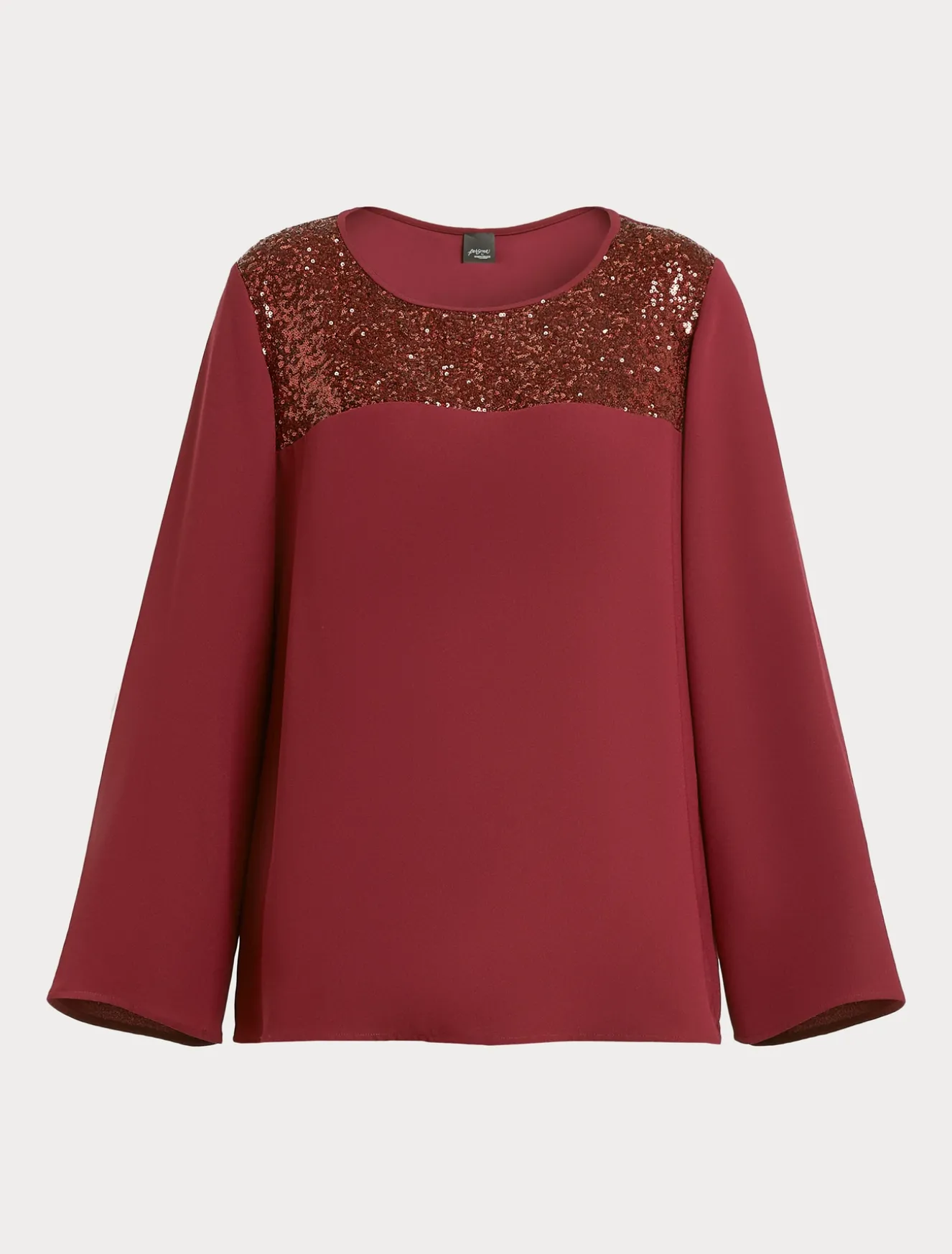 Dettagli stand-out per la blusa in crêpe envers satin rifinita al carré in luminose paillettes. La linea leggermente svasata è femminile e confortevole. La puoi abbinare al pantalone in coordinato.Il capo fa parte della collezione Persona by Marina Rinaldi.