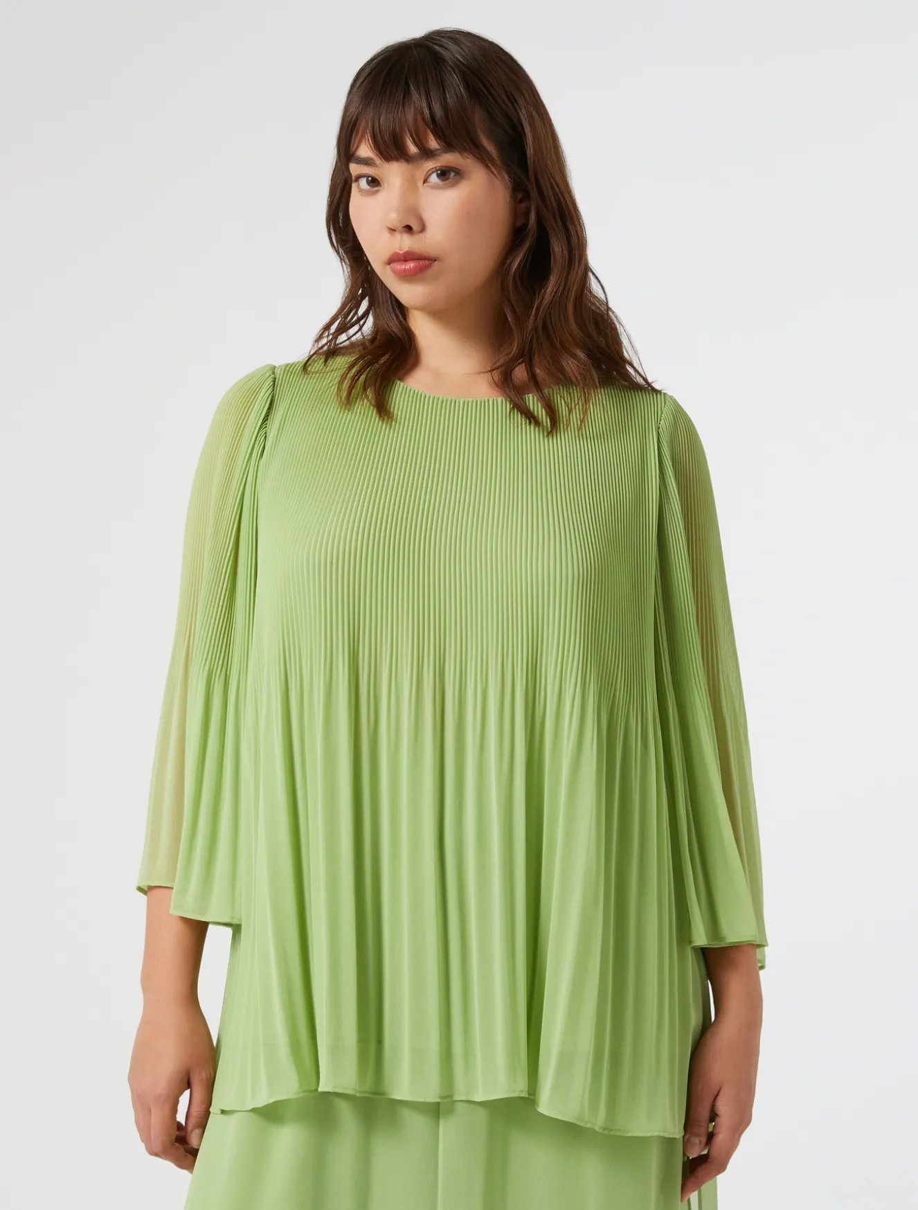 Non passerà inosservata la blusa in georgette plissé in dégradé, dalla linea svasata. Ideale se vuoi dare una nota grafica e femminile al tuo stile.