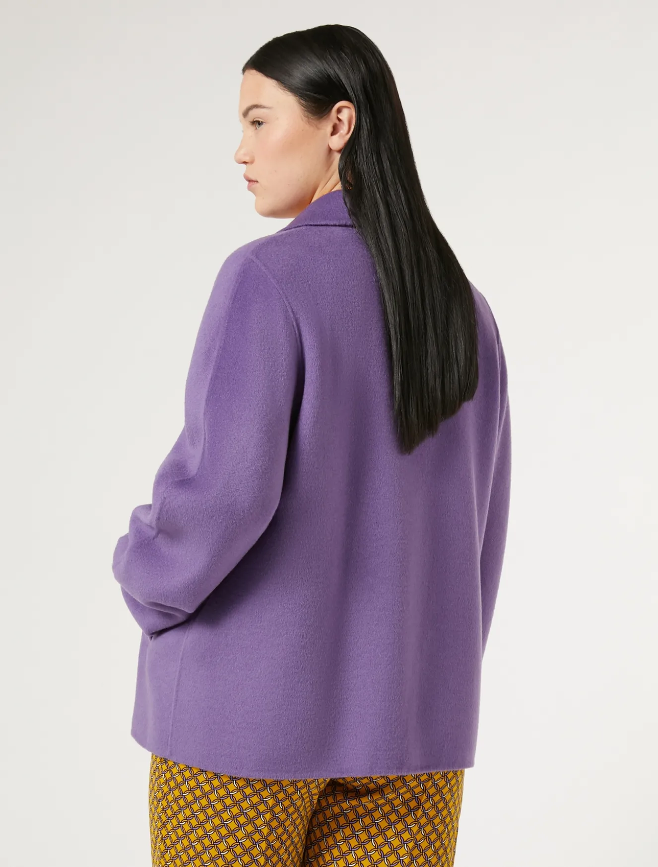 Tagli avvolgenti per il caban in double di lana cucito a mano con ampio collo con rever a incorniciare le spalle e maniche lunghe. Le tasche a filetto sono discrete e funzionali.Il capo fa parte della collezione Persona by Marina Rinaldi.