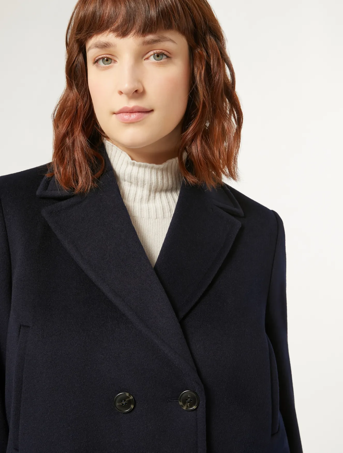 Stile senza tempo per il caban in drap di lana con rever, maniche lunghe, tasche con patta e a filetto. Chiusura con bottoni.Il capo fa parte della collezione Persona by Marina Rinaldi.