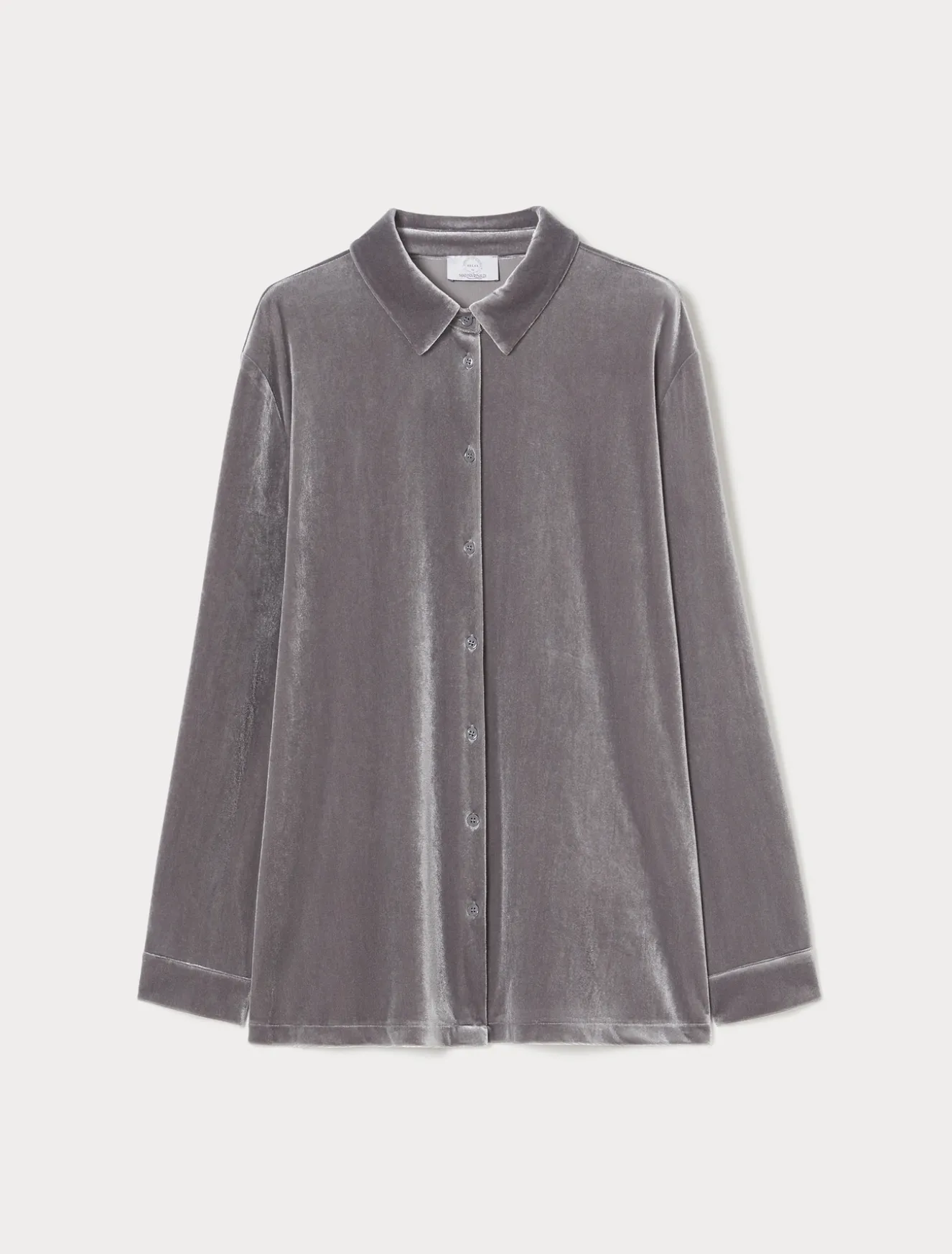 Eleva i tuoi look easywear con la camicia in jersey di velluto, dalla linea dritta. Perfetta tutti i giorni, anche in abbinamento ai pantaloni in coordinato.