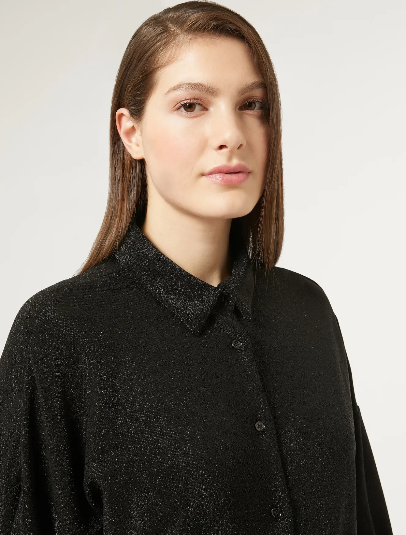 Completa il tuo stile con la camicia in morbido jersey lurex. Carattere inedito per elevare il look in un attimo.Il capo fa parte della collezione Voyage.