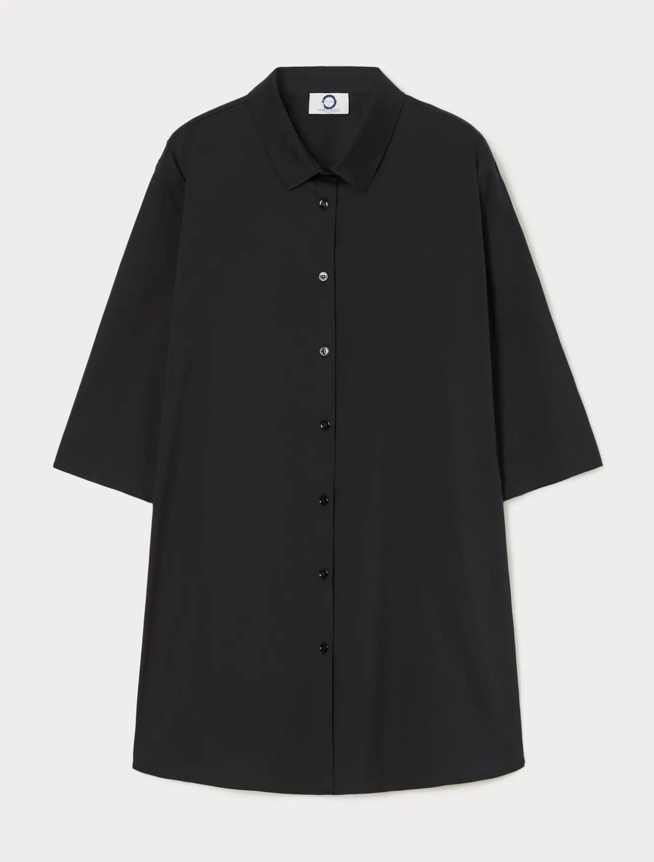 Abbina con facilità la casacca in popeline di cotone e nylon stretch, dalla linea dritta. Un jolly del guardaroba dall’eleganza essenziale.