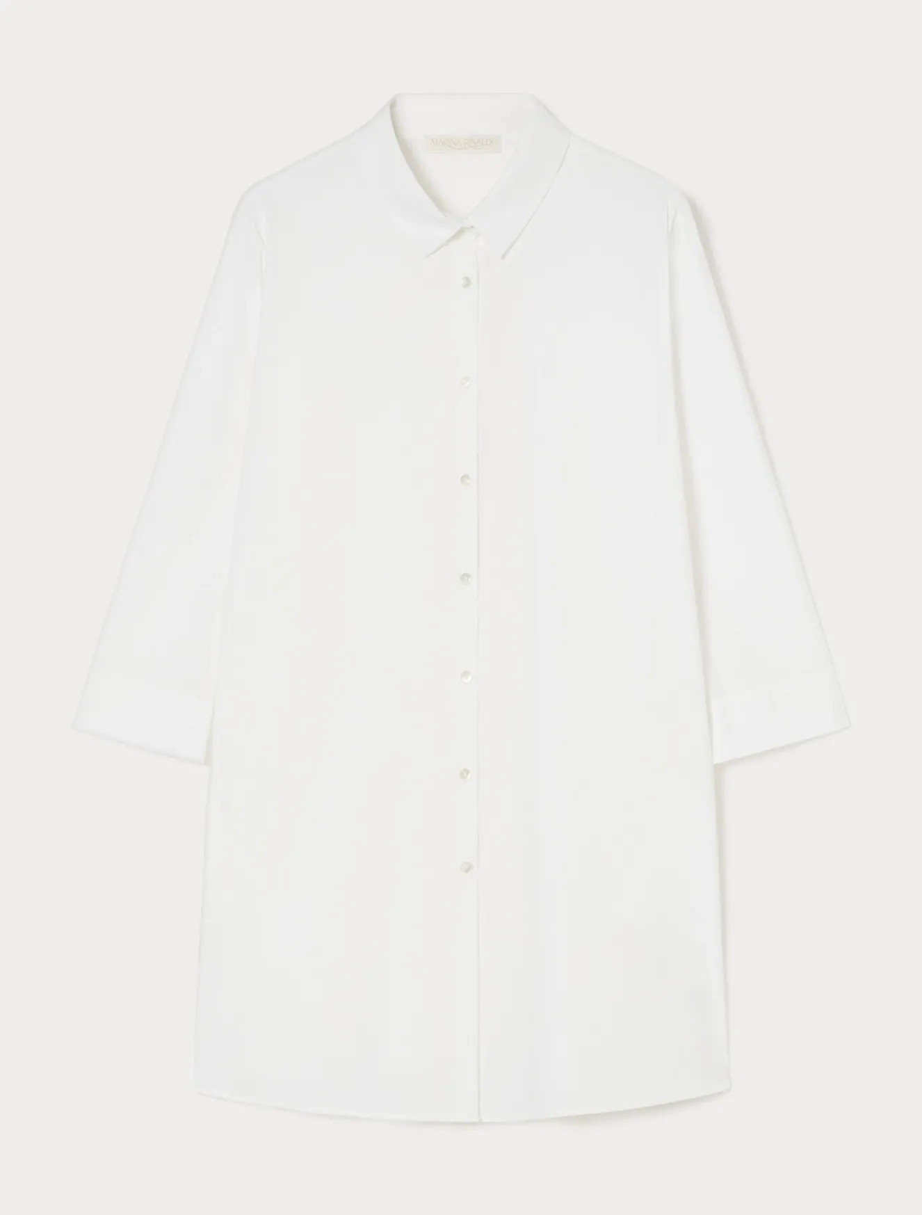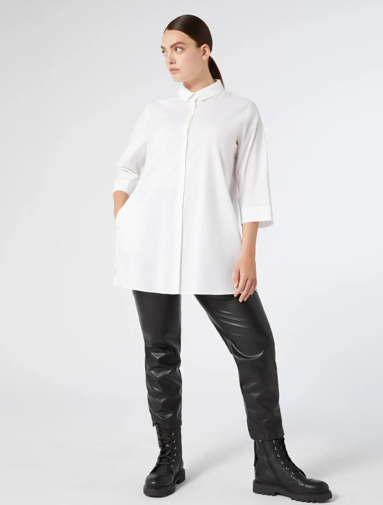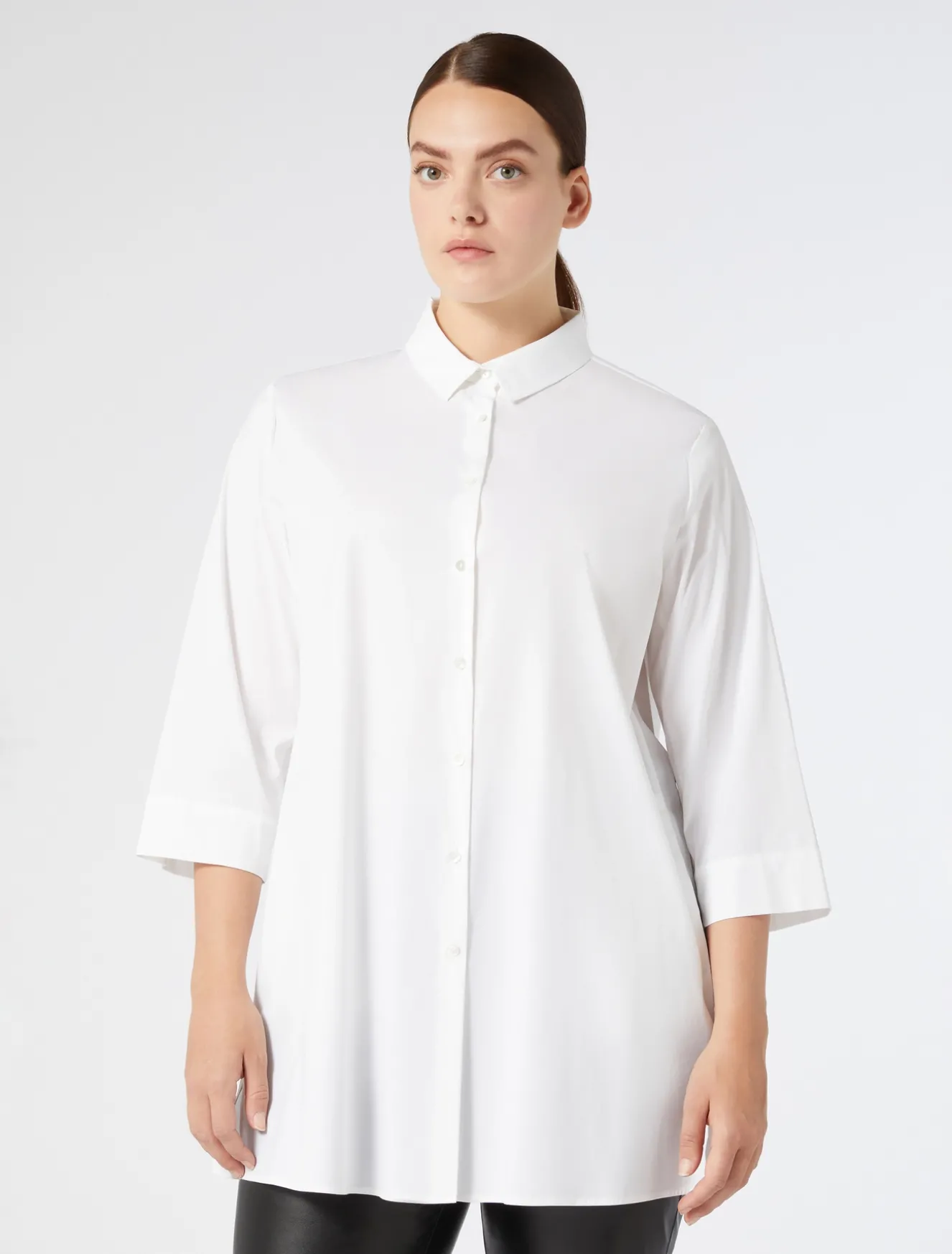Fascino passe-partout per la camicia in popeline di cotone e nylon stretch, dalla linea dritta. Un jolly del guardaroba dall’eleganza essenziale.Il capo fa parte della collezione Easy by Marina Rinaldi.
