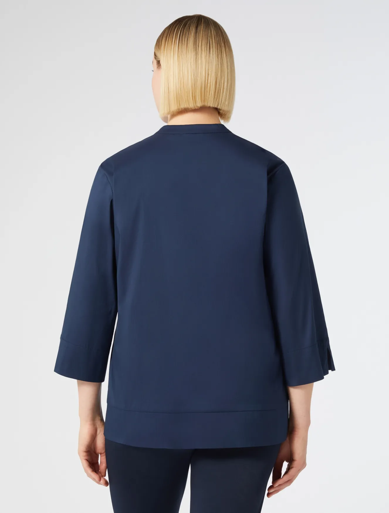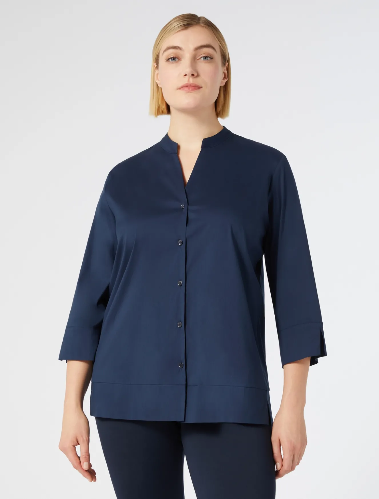 Attitudine versatile per la camicia in popeline di cotone e nylon stretch, dalla linea dritta. Un modello confortevole adatto a diverse occasioni d’uso. Il capo fa parte della collezione Voyage.