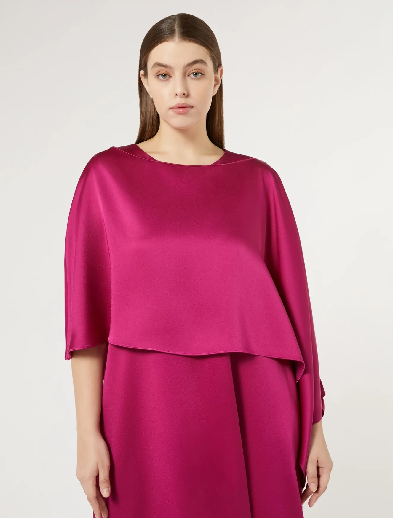 Design asimmetrico per la cappa in crêpe envers satin lucido, con maniche a kimono. Basta indossarla per elevare lo stile in un attimo.Il capo fa parte della collezione Elegante.