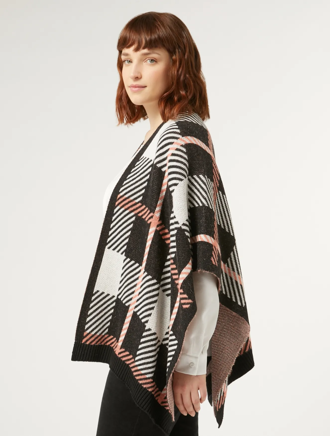 Da avere sempre con sé la cappa in misto lana rifinita con lavorazione jacquard piqué. Da indossare sul pullover o sul cappotto.L’accessorio fa parte della collezione Persona by Marina Rinaldi.