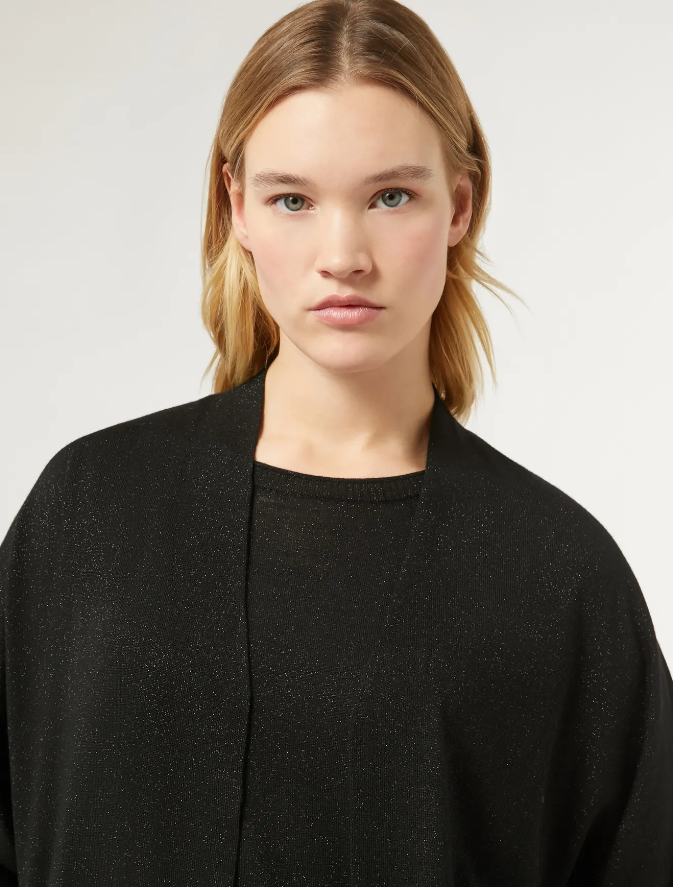 Morbido e ricercato il cardigan in lana effetto metallizzato, dalla linea dritta. Perfetto per dare movimento allo stile.Il capo fa parte della collezione Voyage.