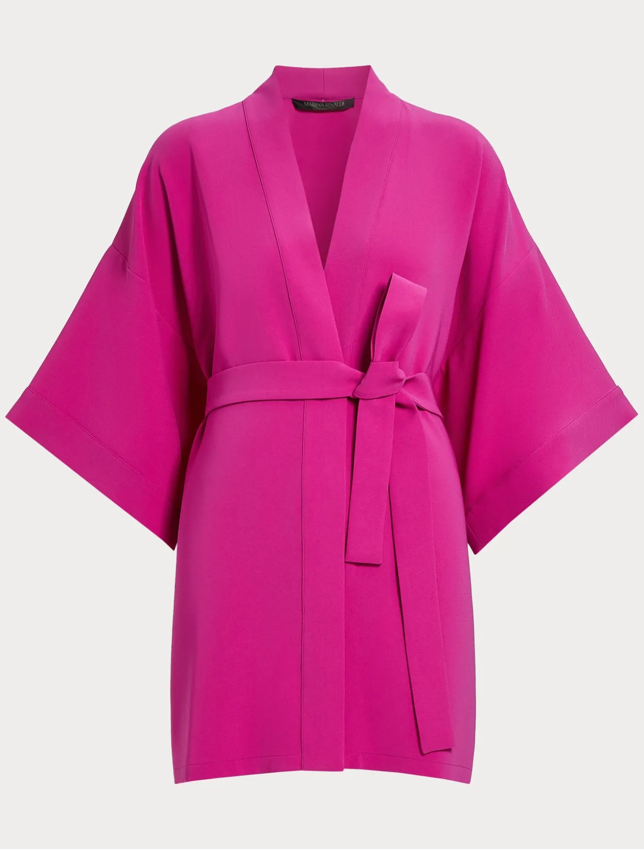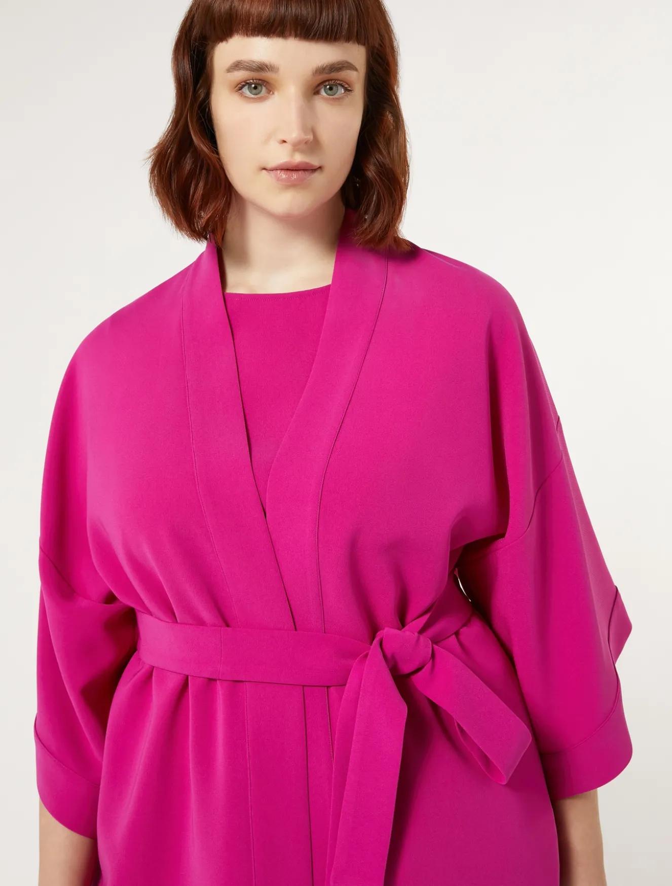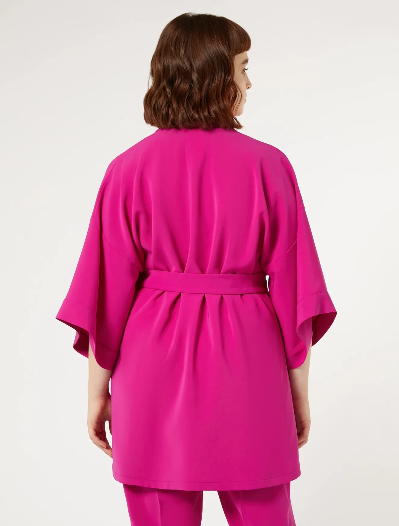 Questa casacca a kimono è realizzata in cady triacetato comfort, un tessuto fluido, di facile manutenzione e anti-imperfezioni. Scollo e fondo manica rifiniti da bordi riportati. La puoi abbinare al top e ai pantaloni in coordinato.Il capo fa parte della main collection Marina Rinaldi.