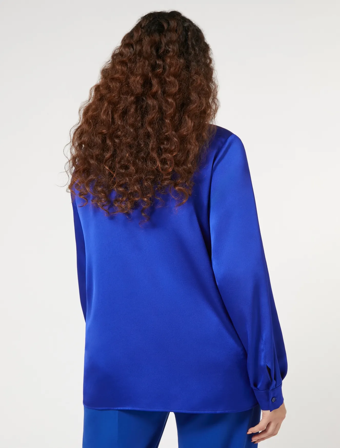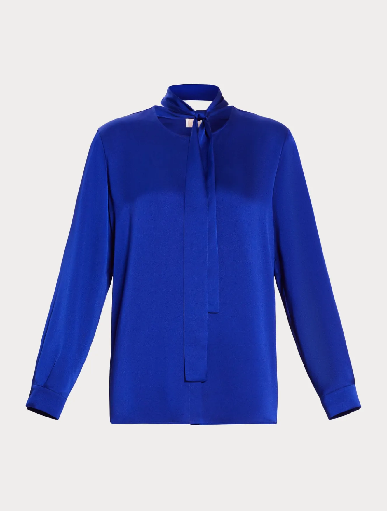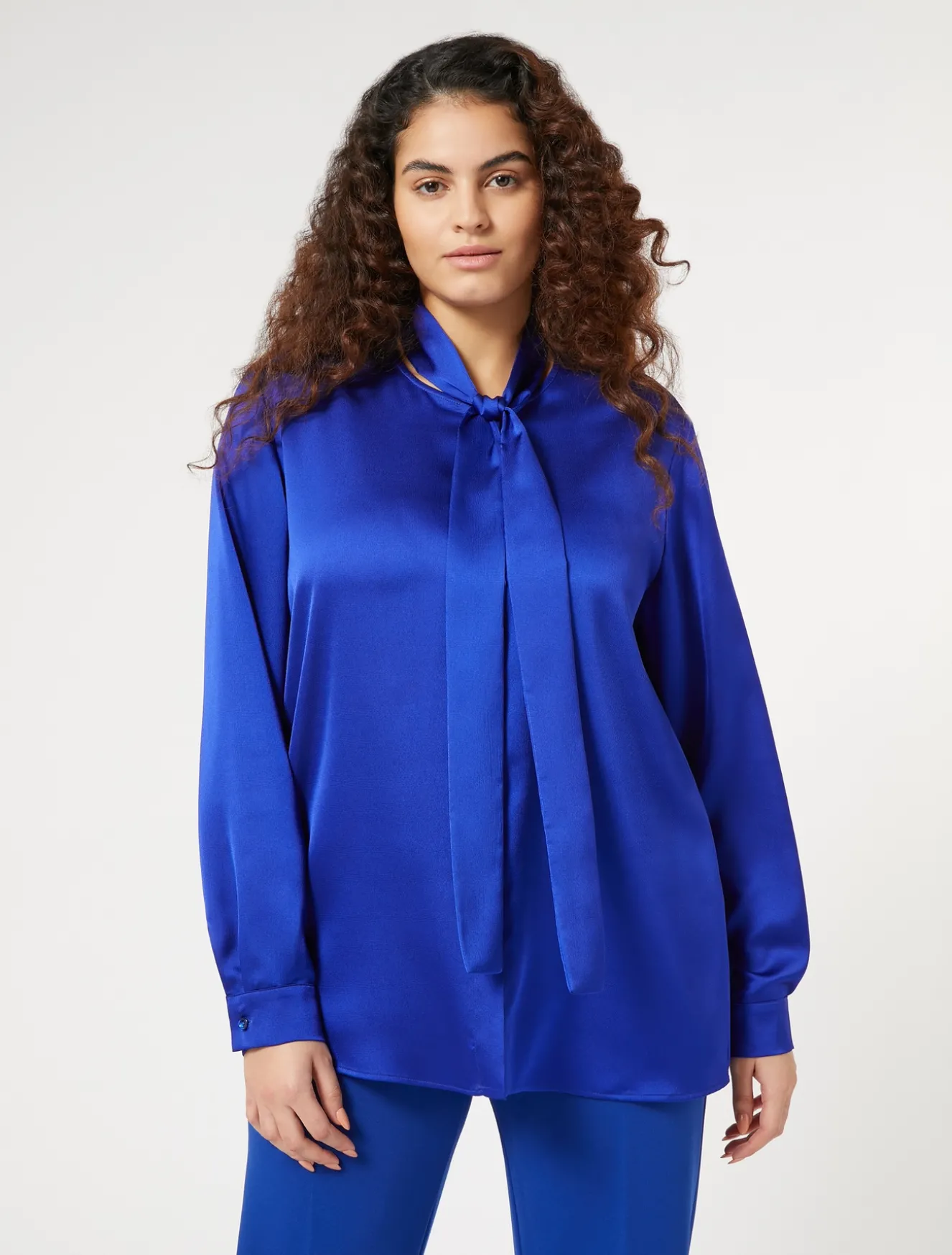 Texture sofisticate per la casacca in raso con girocollo e maniche lunghe. La sciarpina in tessuto coordinato aggiunge un tocco leggero.Il capo fa parte della collezione N.O.W.