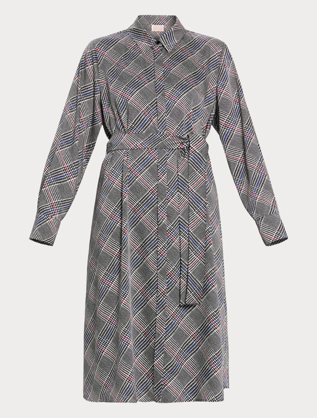 Eleganza essenziale per lo chemisier in twill con colletto a camicia e maniche lunghe con polsini. Con la cintura coordinata regoli il volume.Il capo fa parte della collezione N.O.W.