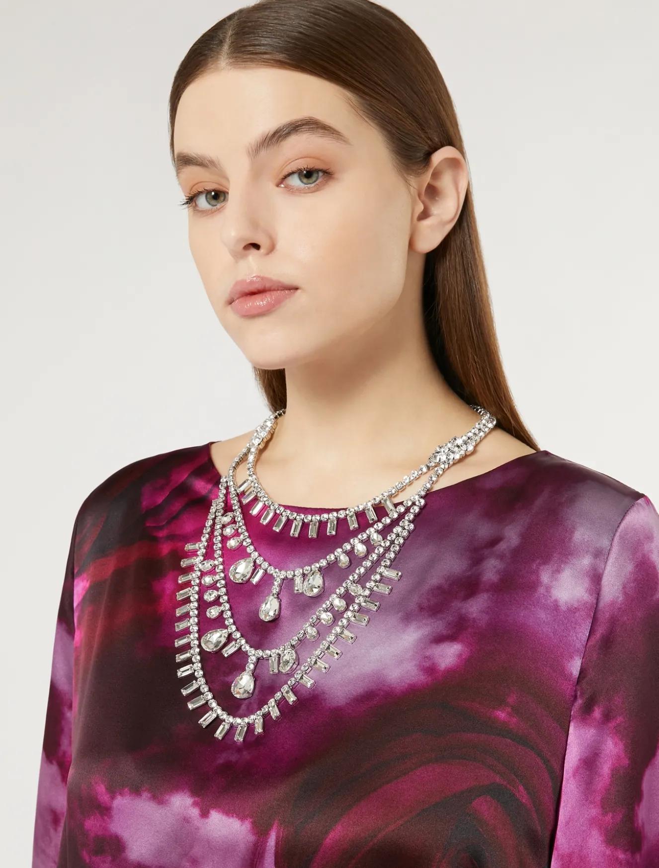 Preziosa e scenografica la collana chandelier multifilo composta da cabochon di diverse forme e misure. Per illuminare lo stile delle mise speciali.Il capo fa parte della collezione Elegante.