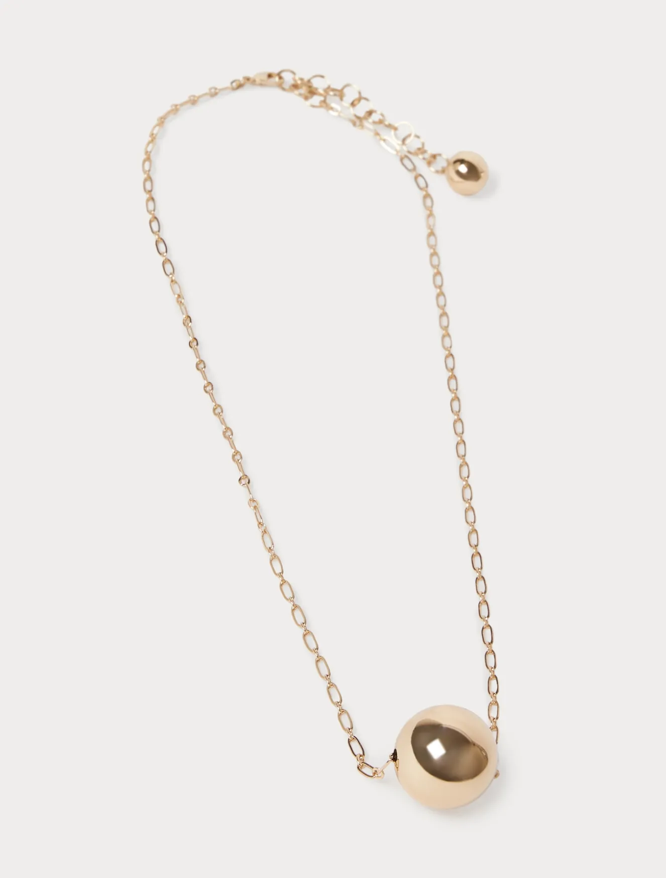 Design essenziale per la collana in metallo con boule centrale. Puoi regolare la chiusura come vuoi.Il capo fa parte della collezione Voyage.