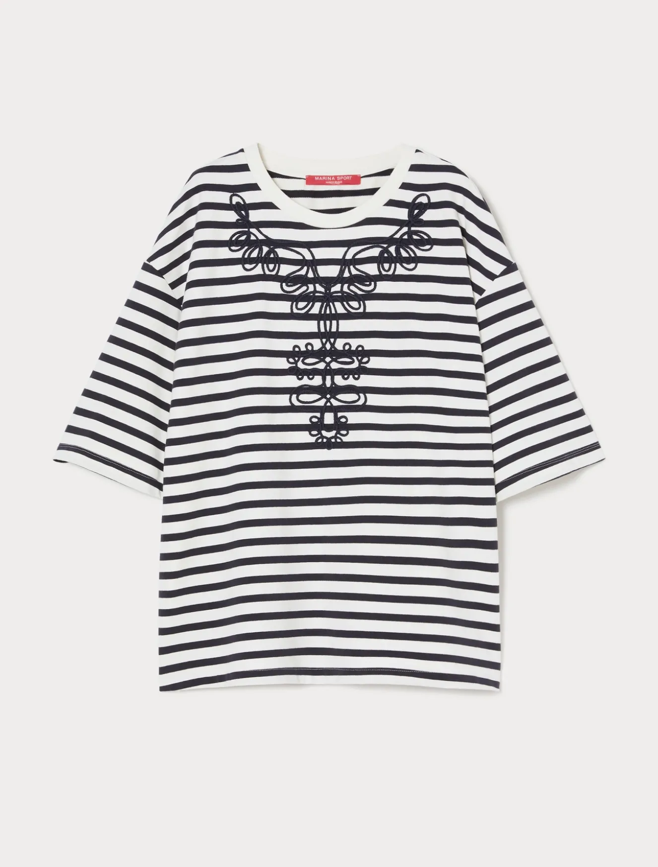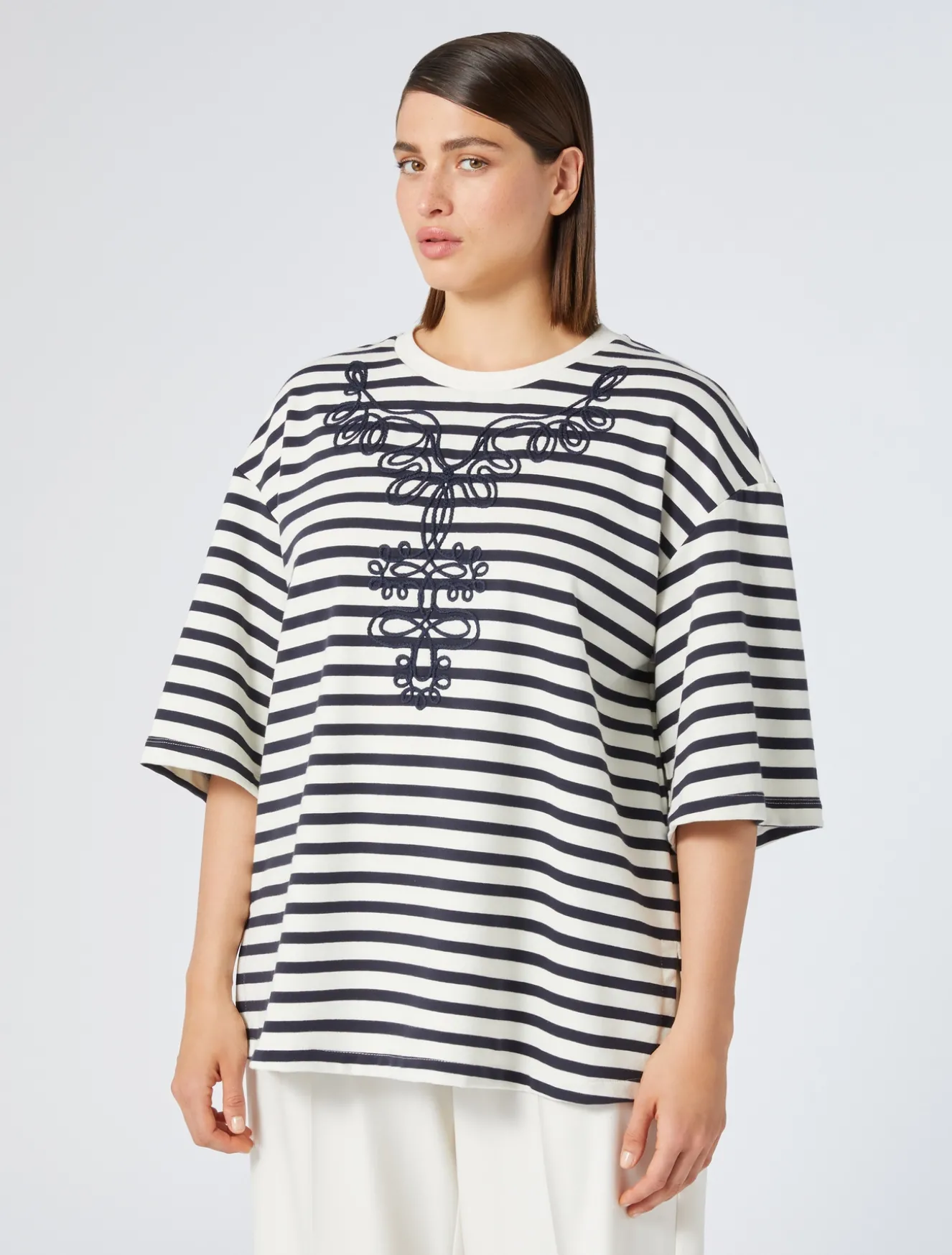 È impreziosita da un ricamo cornely davanti la felpa in jersey di cotone, dalla linea boxy. Easywear ricercato da indossare sempre.